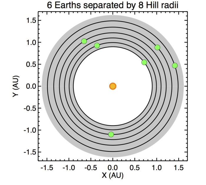 ในชั้นแรก ระบบสุริยะสามารถมีวงโคจรของดาวเคราะห์ในเขตอาศัยได้ถึง 6 วง ซึ่งเรียกว่า Hill Radius ซึ่งเป็นวงโคจรที่ดาวเคราะห์จะอยู่ห่างกันเพียงพอที่โคจรได้อย่างมีเสถียรภาพ ถ้ามันชิดกันเกินไปแรงดึงดูดจะเหวี่ยงพวกมันกันเองจนไม่มีเสถียรภาพ