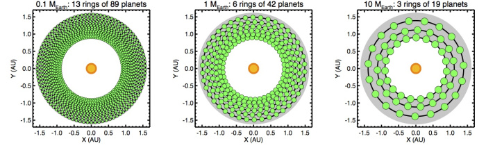 แต่ว่านี่ไม่ใช่ตัวเลขสูงสุด เพราะดาวเคราะห์หลายดวงสามารถแชร์วงโคจรเดียวกันได้ ซึ่งแบบจำลองชี้ว่าแต่ละวงโคจรสามารถรองรับดาวเคราะห์ได้สูงสุดถึง 42 ดวง และน้อยสุดคือ 7 ดวง ถ้าน้อยกว่านี้จะไม่เสถียร