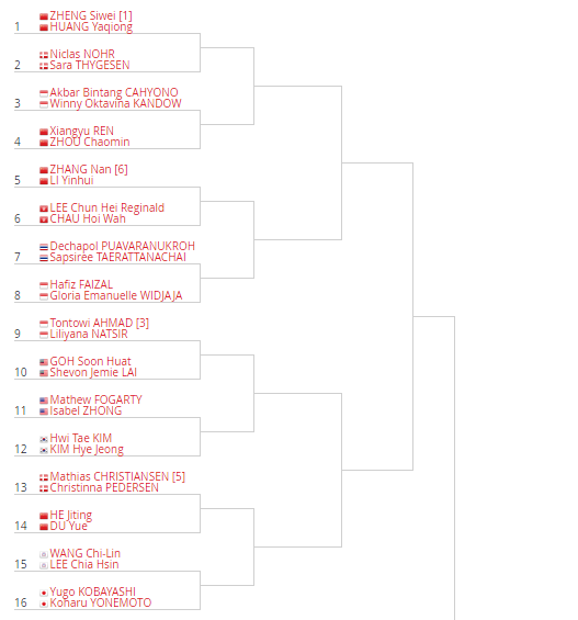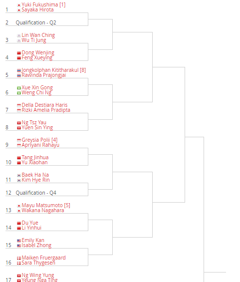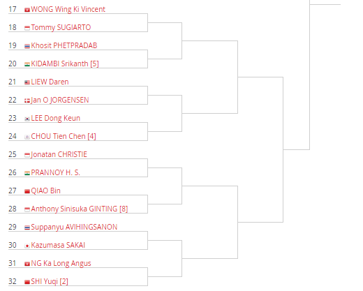 สายการแข่งขัน Fuzhou China Open 2018 และ Hong Kong Open 2018