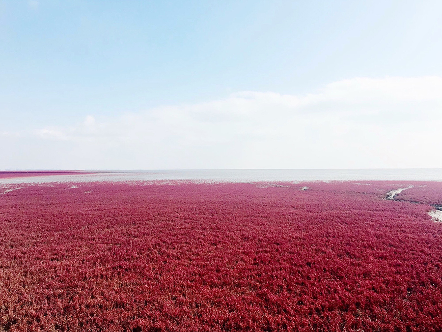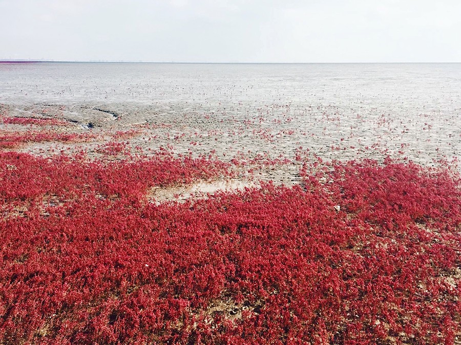สถานที่นี้มีชื่อภาษาจีนว่า "หงไห่ทัน(红海滩)" หรือที่รู้จักกันในชื่อว่า "ทะเลสีแดง" ตั้งอยู่ที่เมืองผานจิ่น มณฑลเหลียวหนิง