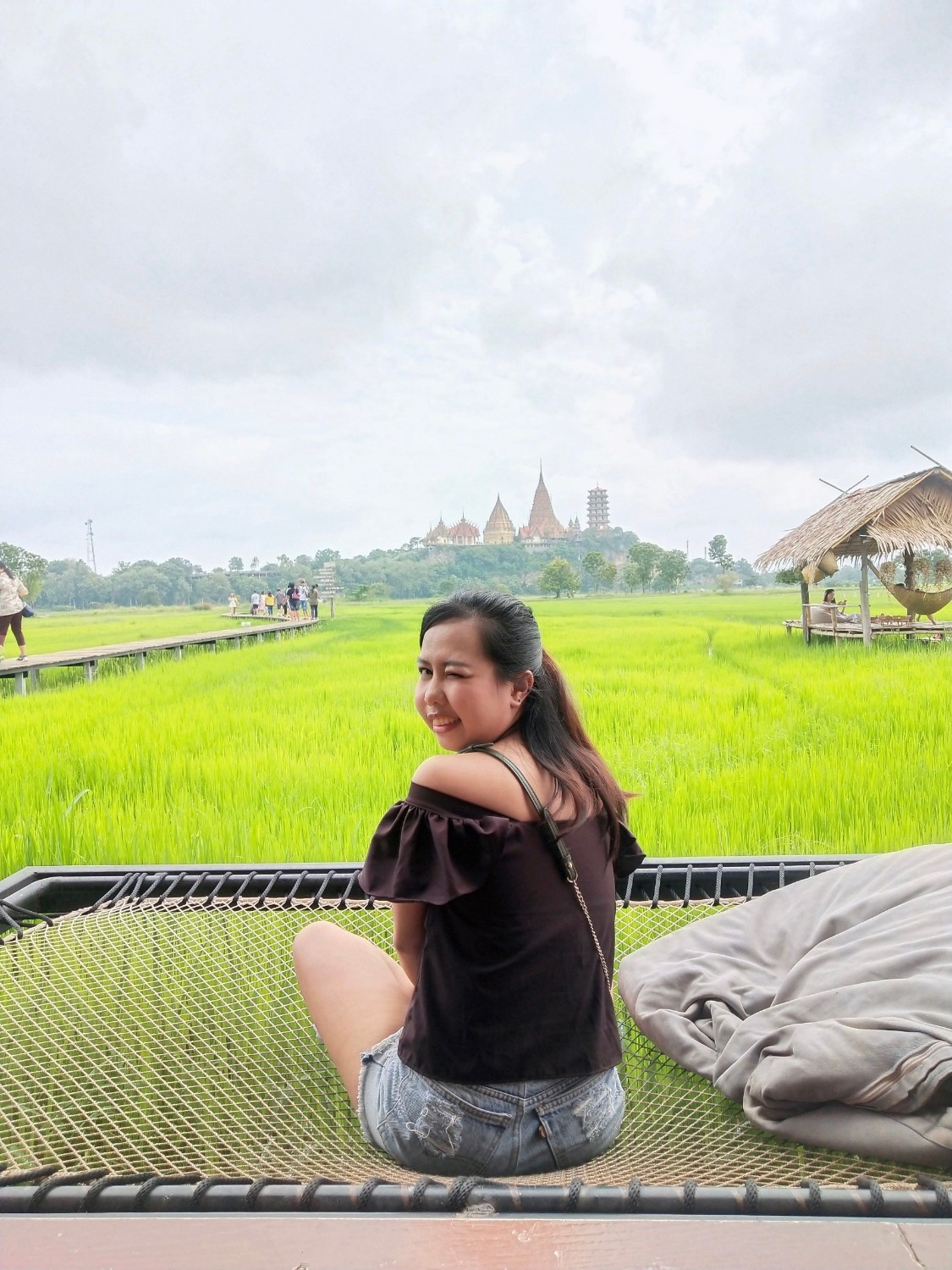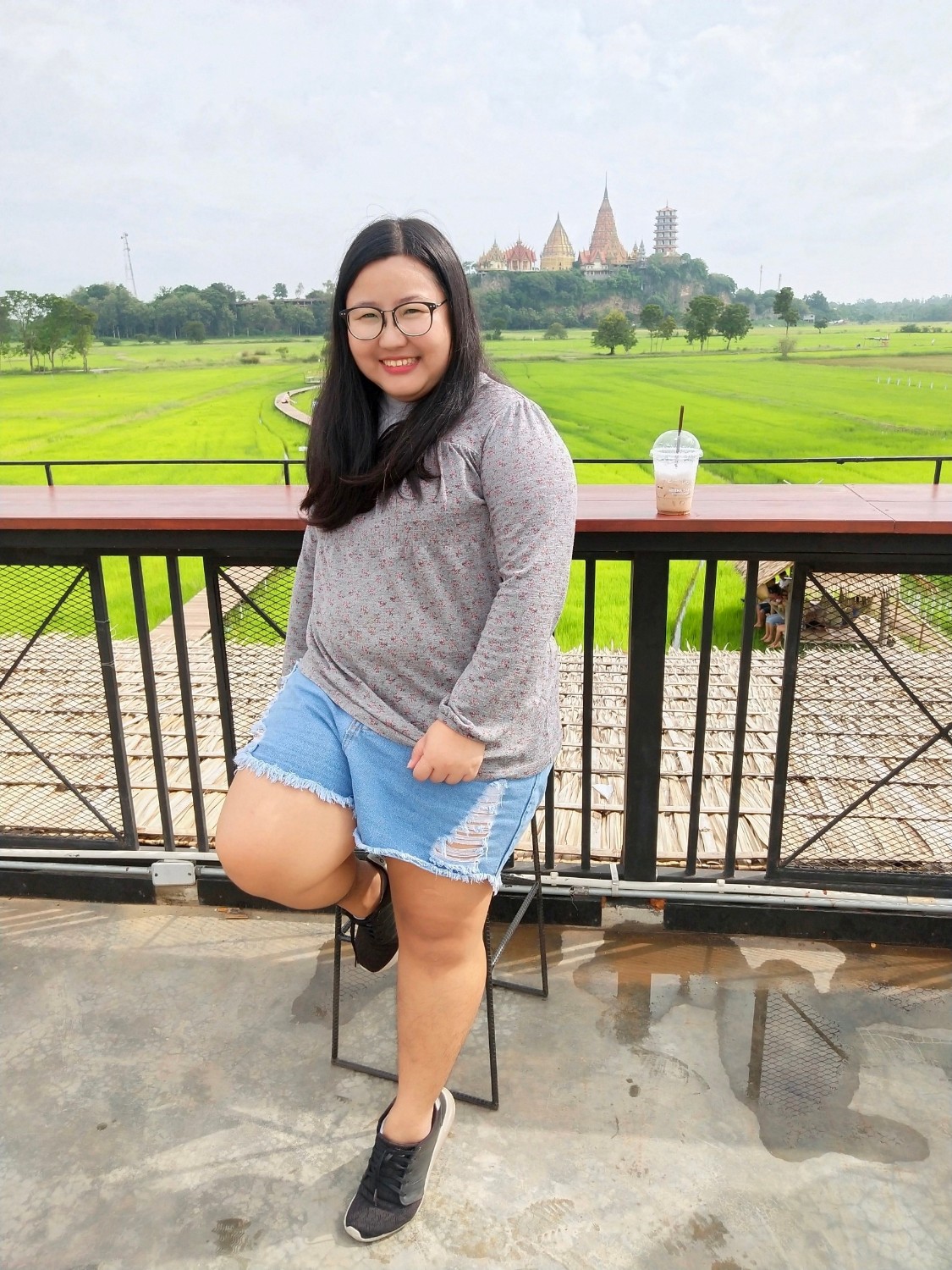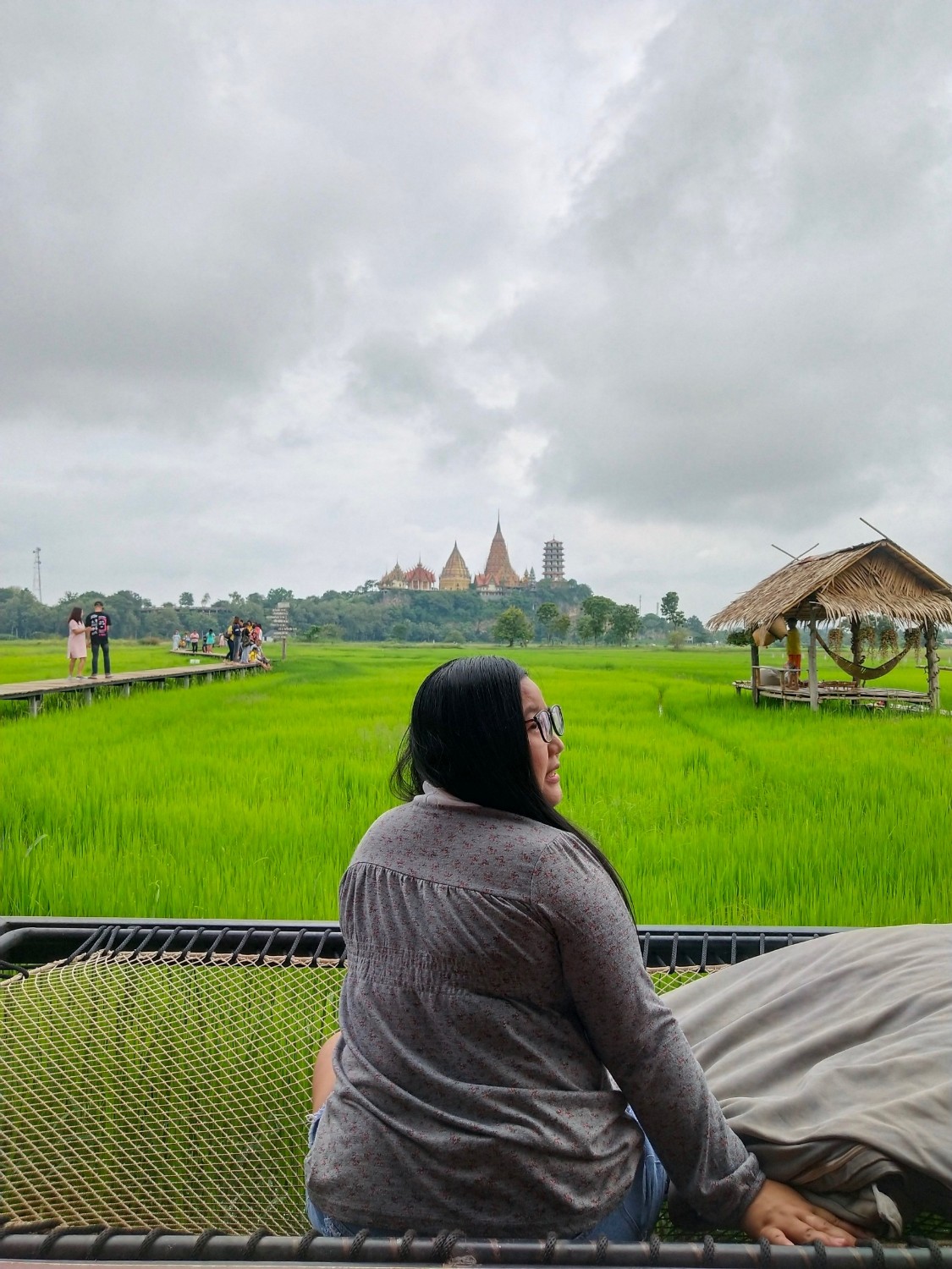 ด้านหลังจะมองเห็นวิววัดถ้ำเสือ ในรูปอาจจะดูไกล แต่ของจริงไม่ได้ไกลขนาดนั้น