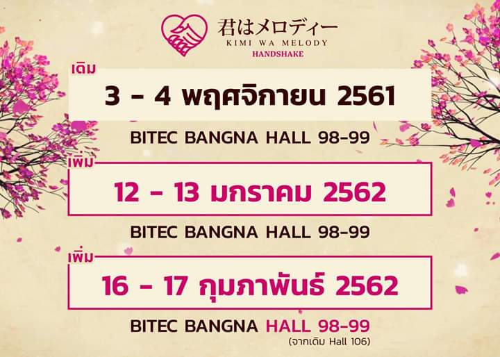 จากไทม์ไลน์โปรโมทงานวงในปัจจุบันเดาว่า MV Kibouteki Refrain คงน่าจะปล่อยปลายเดือนนี้หรือต้นเดือนหน้า 2-3 Dec Fan Fest 9 Dec งานเลือกตั้ง 10 Dec BNK CONซิงเลือกต