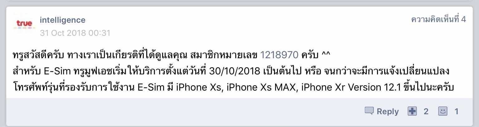 truemove H เป็นรายแรกและรายเดียวที่ให้บริการe-sim ในประเทศไทย