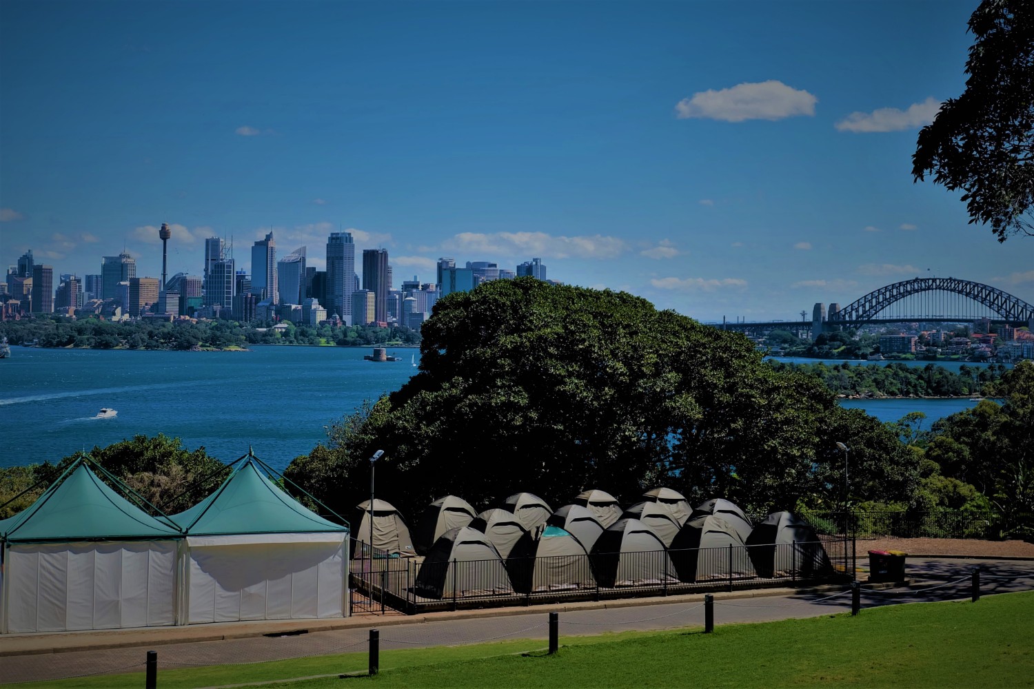 ภาพอ่าวซิดนี่ย์ในมุมกว้างจากฝั่งสวนสัตว์ทารองก้า ซึ่งเราจะเห็นหอคอยซิดนีย์ คุกใต้น้ำ สะพานฮาเบอร์ ล้วนแล้วแต่เป็นแลนมาร์คของเมืองนี้ ขาดแต่เพียงสิ่งเดียวคือโอเปร่าเฮ้าที่ถูกบดบังด้วยต้นไม้ขนาดใหญ่ตรงกลางภาพ