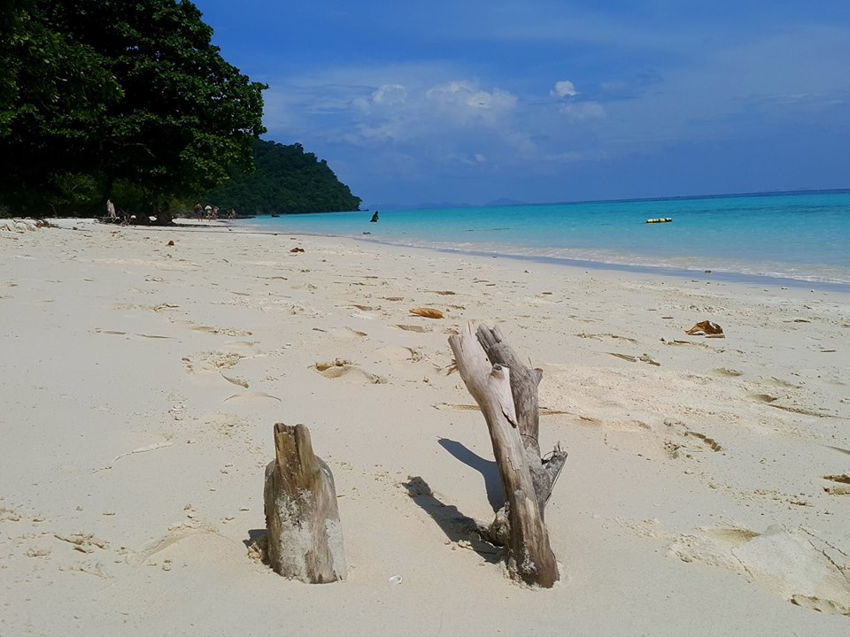 น้ำทะเลที่นี่ จะเป็นโทนสีฟ้าๆ แปลกตาจากเกาะอื่นๆของกระบี่ที่จะเป็นสีโทนเขียวมรกต