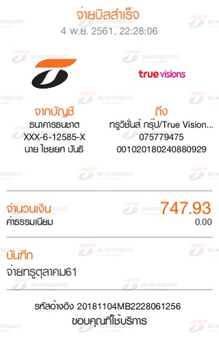 รบกวนตรวจสอบให้หน่อยครับจ่ายค่าโทรฯเมื่อวานผ่านแอพธนาคารธนชาตแต่ตรวจสอบยังไม่มีการตัดยอดครับ