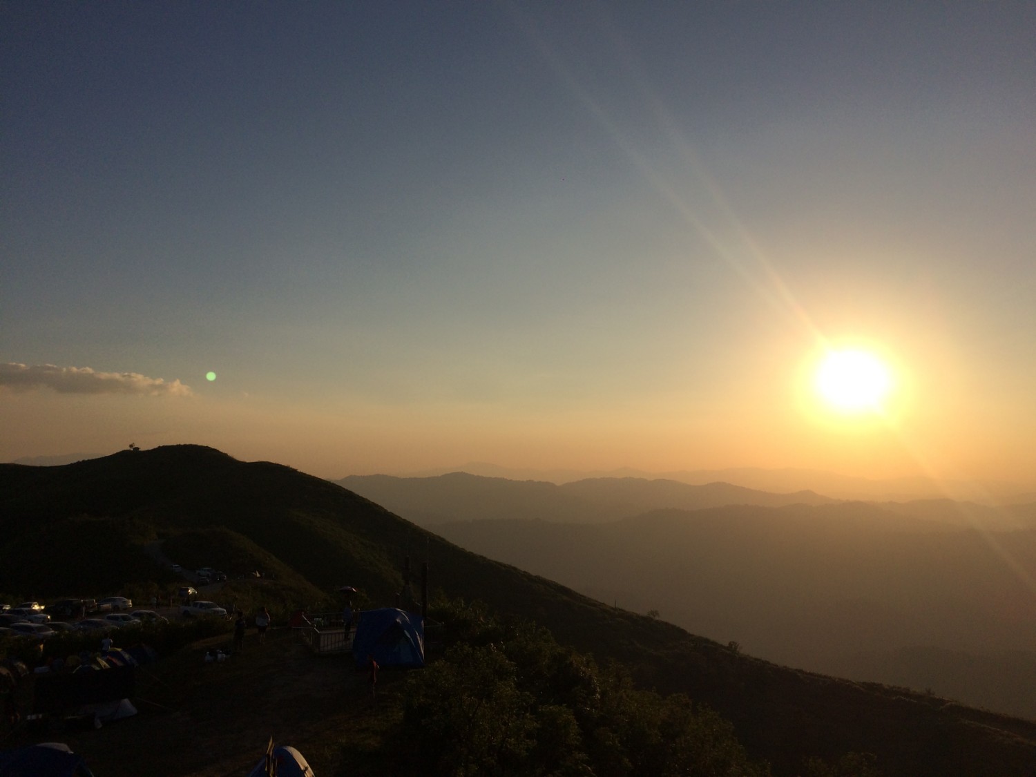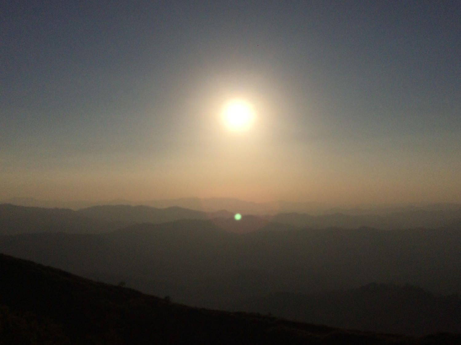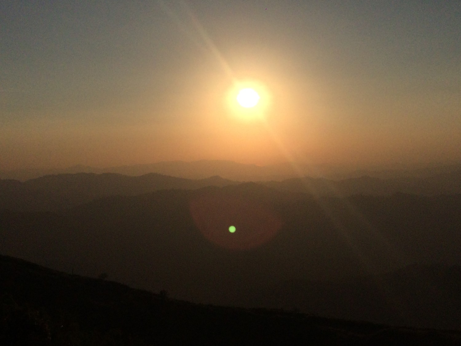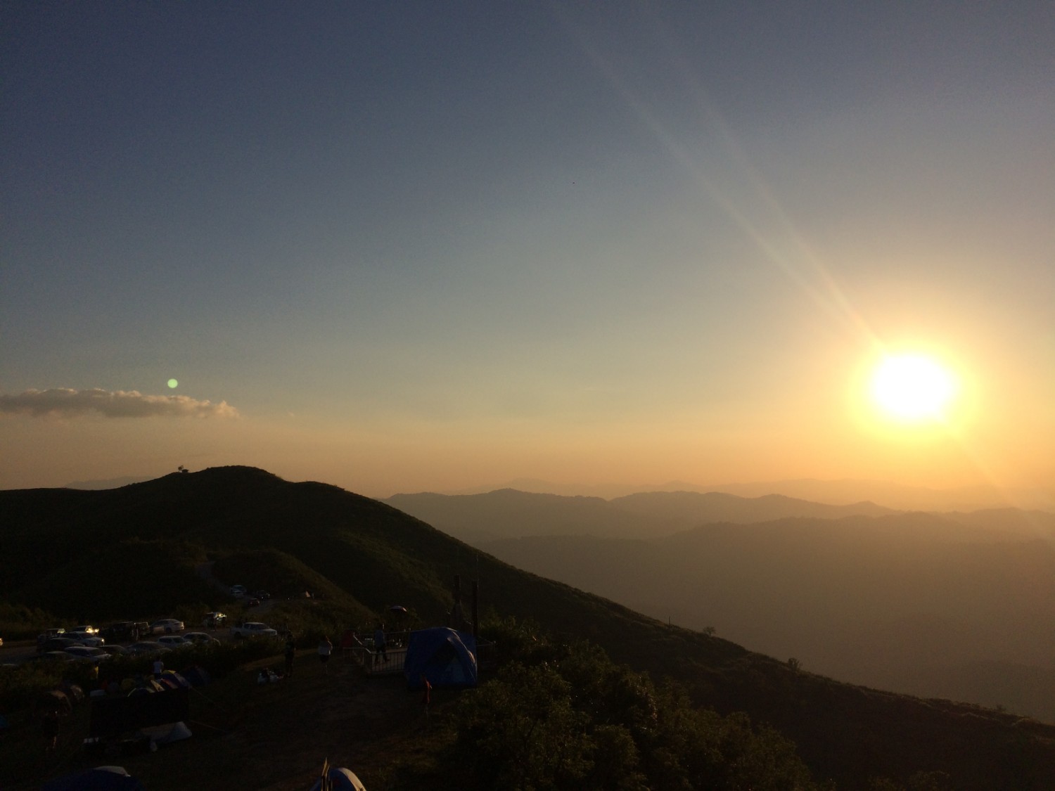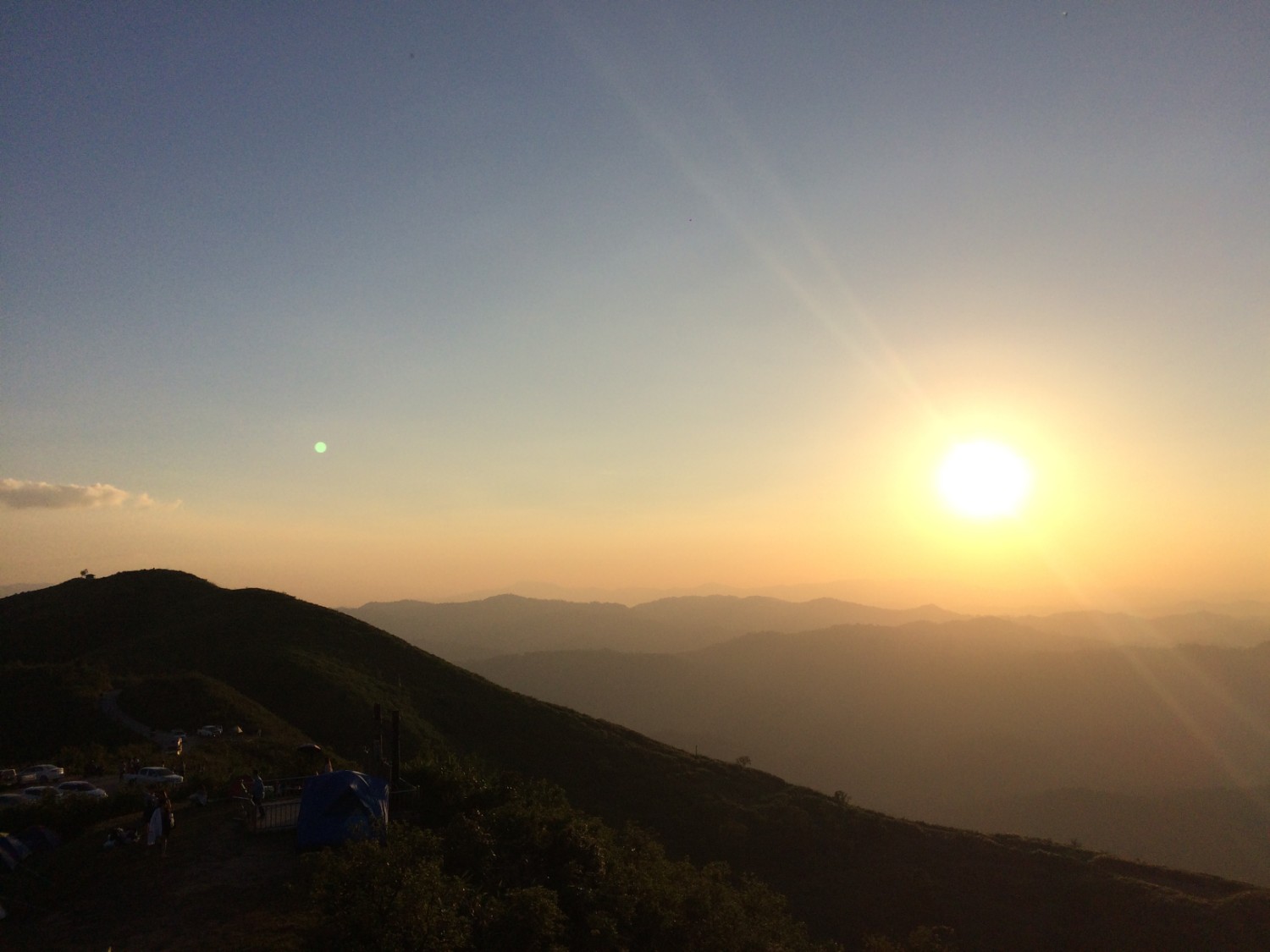 ทางขึ้นมาไม่ง่ายซะทีเดียวนะครับ มีทั้งหลุมและเหล็กเส้น สภาพทางโหดกว่าทางขึ้นมาพอสมควร ผมตัดสินใจว่าจะรออยู่ที่นี่ดูพระอาทิตย์ตกดินครับ ระหว่างนั่งรอ เห็นว่ามีรถขึ้นมาเยอะมาก น่าจะเป็นรถของกลุ่มคนที่มาดูพระอาทิตย์ตกเหมือนกัน เลยกะว่าเก็บรูปมาซักนิดหน่อย แล้วรีบชิ่งลงดีกว่า เพราะเราไม่ชินทาง