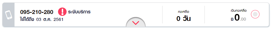จากรูป ซิมใช้งานได้ถึง 03/10/2561 และ สถานะปัจจุบัน = ระงับบริการ (ผมเข้าใจว่า โทรออก+รับสาย ไม่ได้เลย)