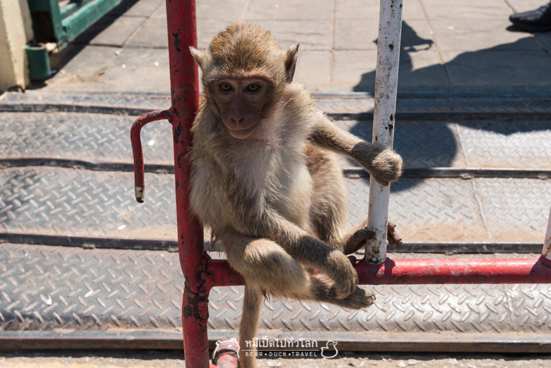 ...หลังจากไหว้เจ้าพ่อเรียบร้อย อาเจ๊เห็นคุณลุงท่านหนึ่งกำลังปอกขนุนอยู่ทางฝั่งซ้ายเพื่อเป็นอาหารลิง เราอยากเดินไปดูใกล้ๆ แต่ยังไม่ถึงไหน เจ้าจ๋อตัวหนึ่งก็กระโดดลงมาบนไหล่ของเธอ จกแว่น แล้วกระโดดขึ้นหลังคาไปอย่างรวดเร็ว...