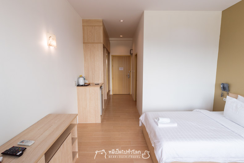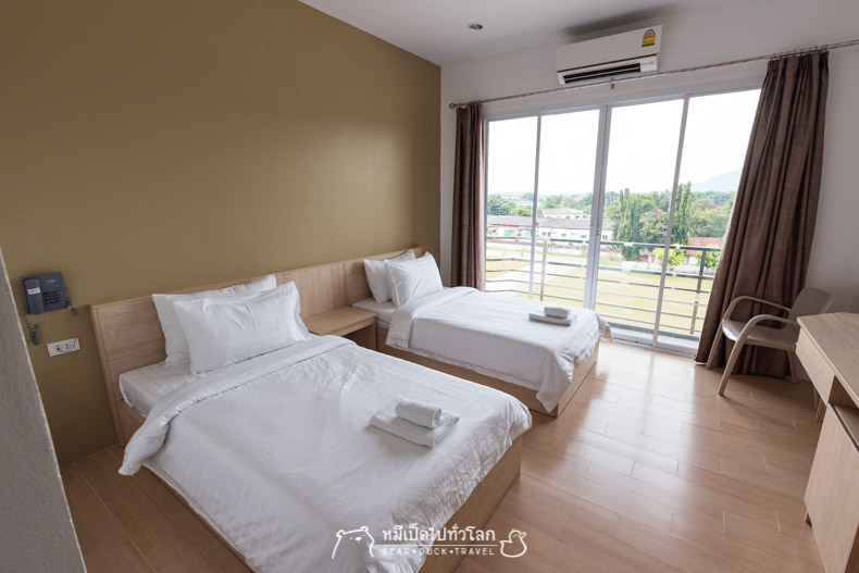 โรงแรมใหม่เอี่ยม ห้องกว้างใหญ่ วิวภูเขา มีปลั๊กสามตาประมาณ 6 จุด เตียงแน่นไม่ยวบ และมีหมอนให้สองใบ พร้อมแอร์เย็นๆ หลังจากเดินอาบเหงื่อมาทั้งวันอะไรมันจะฟินกว่านี้ ขอนอนยาวๆ ไปเลยได้ไหม ข้าวเที่ยงก็ยังอยู่เต็มท้อง ข้าวเย็นไม่จำเป็นต้องกินก็ได้
