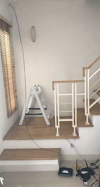 - พอเริ่มลากสาย Fiber เข้าบ้าน ... ครับ >> ความยาวสายมันไม่พอครับ << คือต้องเอา Router วางไว้บนพื้น ดูตามภาพครับ น่าเกลียดมากๆ