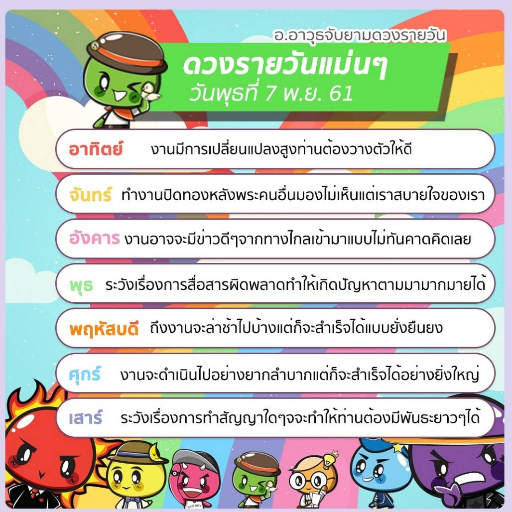 ดวงรายวัน ประจำวันพุธที่ 7 พ.ย. 61 เพื่อความบันเทิง @ ดวงlive