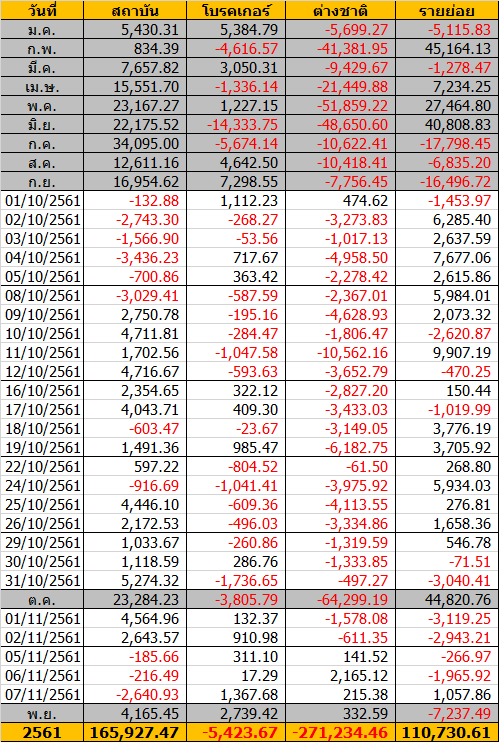 Sinthorn Summary 6/11/2561 : ต่างชาติซื้อสุทธิ 2,165.12 ลบ.