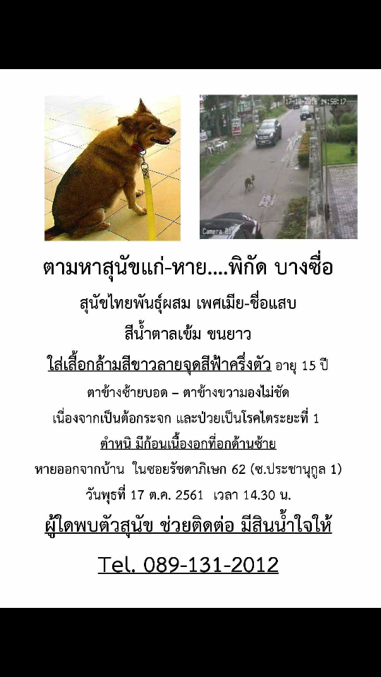 ตามหาสุนัข - ชรา+ป่วย...หาย...เป็นวันที่ 22...พิกัด บางซื่อ+จตุจักร