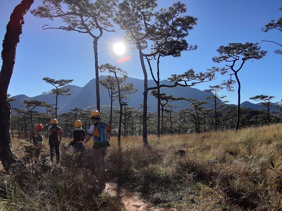 อันนี้เพื่อนๆเราไม่ค่อยมีใครขึ้น เลนไม่มีรีวิวมาก ส่วนใหญ่ก็ดูในพันทิพนี่แหละ เราก็ตื่นมาทำกับข้าวกินกัน แต่ไม่อาบน้ำหรอกนะ หนาวเหลือเกิน น่าจะประมาณ7องศาได้ แค่แปลงฟันมือก็แข็งแล้ว ก่อนจะขึ้นยอด ก็มาใส่อุปกรณ์ ก่อนขึ้น ยอด มีหมวกกันกระแทกมั้ง ไม่รู้เขาเรียกอะไรกัน ละก็เซฟตี้เบลล์ เขียนไม่เป็น555 ละก็ถุงมือ พอดีวันนี้หัวหน้าอุทยานขึ้นมานอนบนลานสนด้วย เขาเรียกพวกเราไปถ่ายรูปด้วย เขาบอกว่ารูปนี้จะเป็นรูปโปรโมท ของอุทยานปีนี้ เอาวะเท่ไปอีกกกกกก 555วันนั้นมีคนขึ้นยอดพร้อมกับพวกเราทั้งหมด 14คน จะมีพี่เจ้าหน้าที่นำทางไป มีคนนำ1คน ละปิดท้าย1คน ช่วงแรก เราก็จะเดินผ่านทุ่งหญ้าที่สลับกับต้นสน ฟินไปอีกกกกเหลือนเล่นMVอะ 555