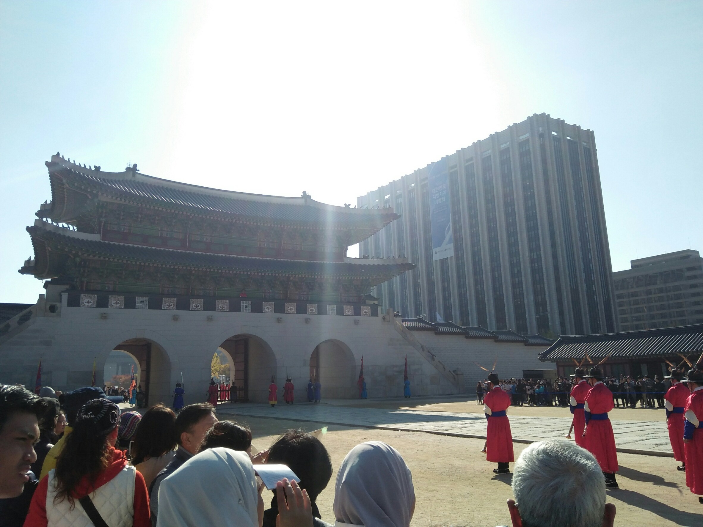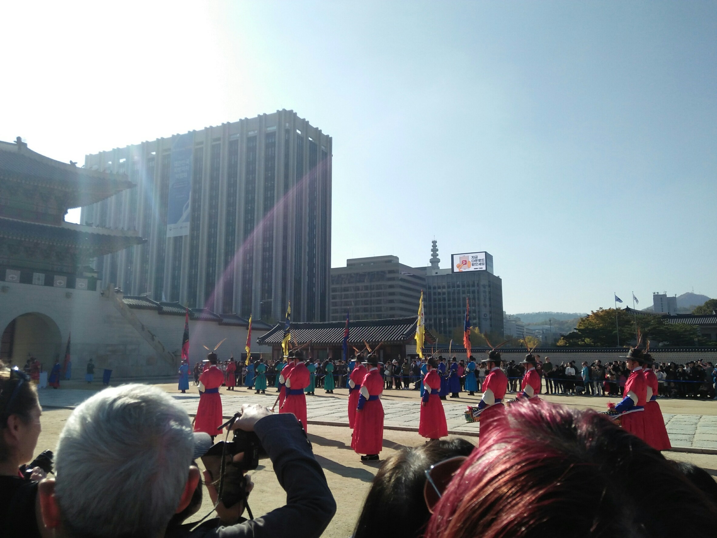 ถ้าใครมาในช่วงเวลา 10.00 น. และ 14.00 น. ก็จะได้เห็นพิธีเปลี่ยนเวรยามรักษาการณ์ของทหารประจำพระราชวัง (Royal Guard Changing Ceremony) อ๋อๆ อย่าลืมไปเช่าชุดฮันบก มาใส่กันด้วยล่ะ จะได้รูปสวยๆ กลับไปอวดเพื่อนได้ เพราะเราก็มีรูปมาอวดเหมือนกัน