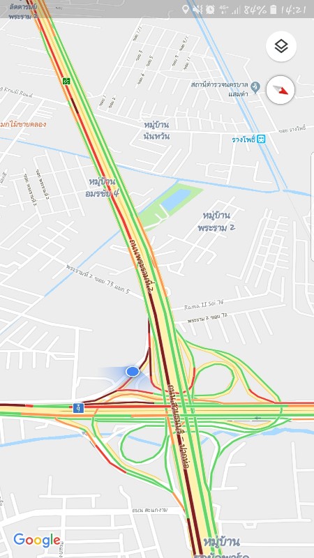 จากแผนที่ใน google map เหมือนโดนกั๊กรถไว้ตรงทางออก ทางดว่ากาญจนาฯ พระราม 2 นี่ใช่ไหมประเทศไทย