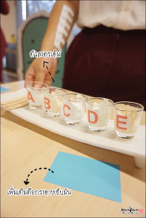 เข้าสู่การทดลองที่ 2 ค่ะ A B C D ยังอยู่กับเรา เพิ่มเติมคือมีกระดาษซับหน้ามัน