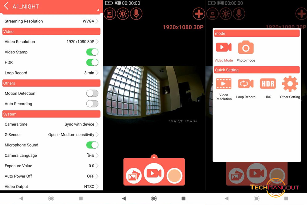 หน้าหลักๆจะเป็นการตั้งค่าว่าจะเอาภาพอะไรแบบไหน ความคมชัด HDR Loop กี่นาที ตั้งค่าอะไรยังไงบ้างได้หมด หรือจะดูภาพสดๆได้เลยและกดถ่ายรูปได้จากแอพกล้องครับ รวมถึงโหมดในการถ่ายต่างๆว่าจะภาพนิ่งหรือวีดีโอ