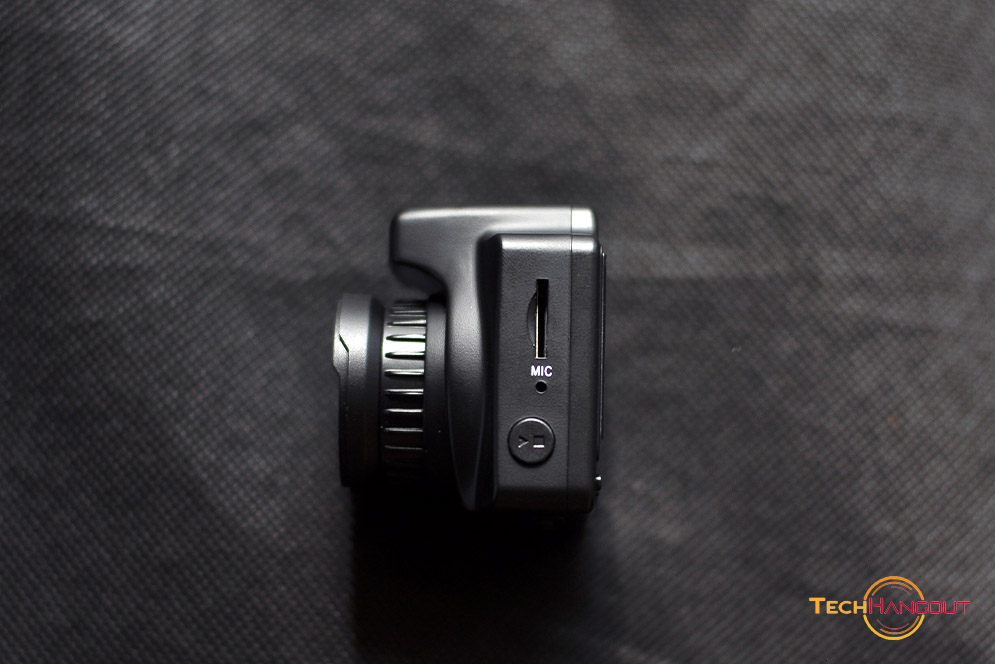 ด้านหน้าของกล้องติดรถยนต์ตัวนี้ เป็นเลนส์มุมกว้าง 145 องศานูนขึ้นมา มีโลโก้ และรูระบายความร้อนมุมซ้ายบน และเรียบๆครับในส่วนด้านหน้า เหมือนกล้องใหญ่ มีเลนส์ มีแฟลชเลยแหละ