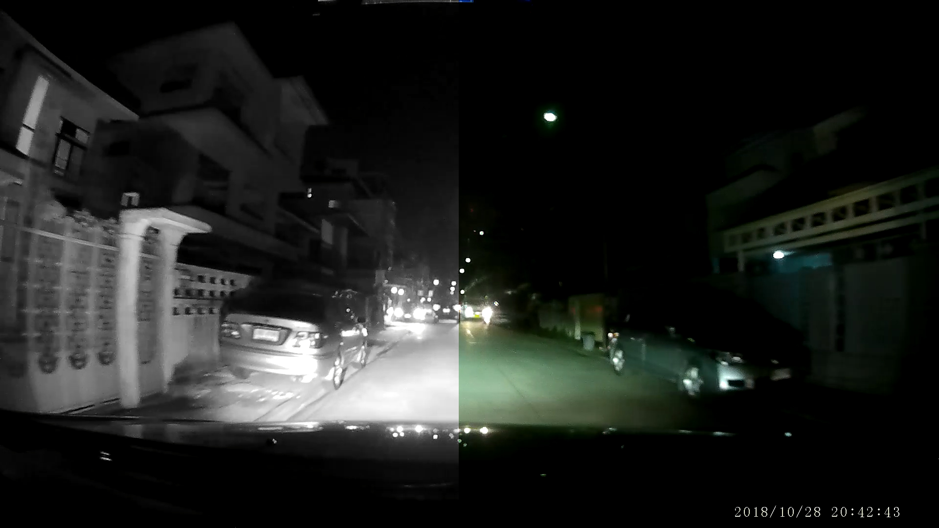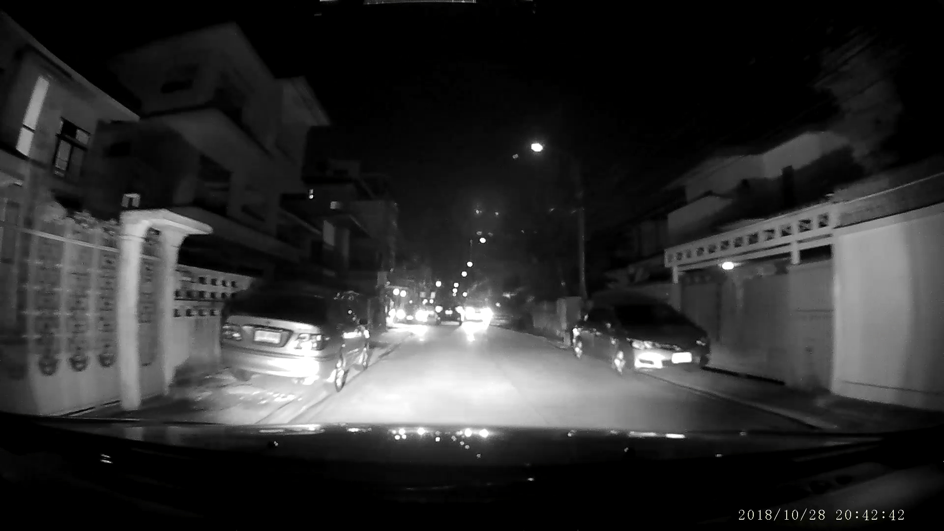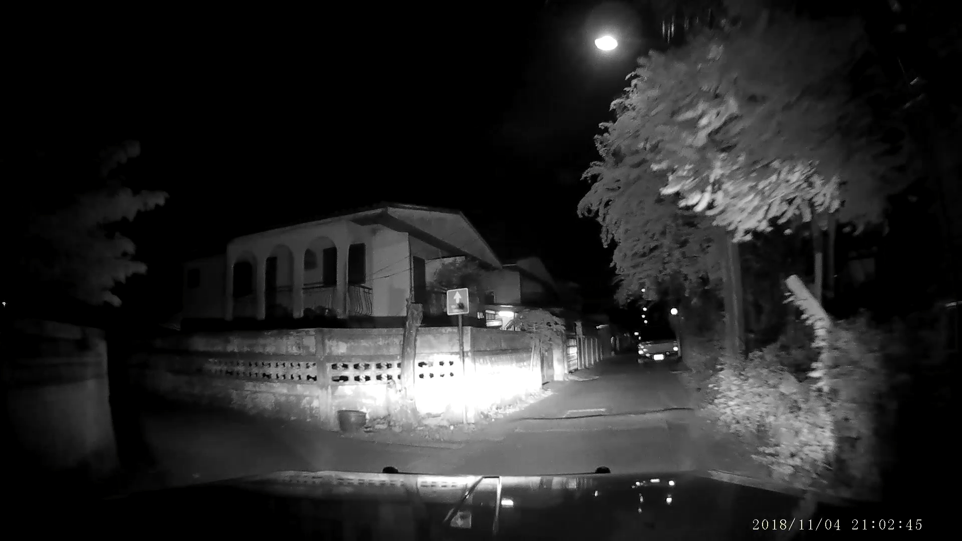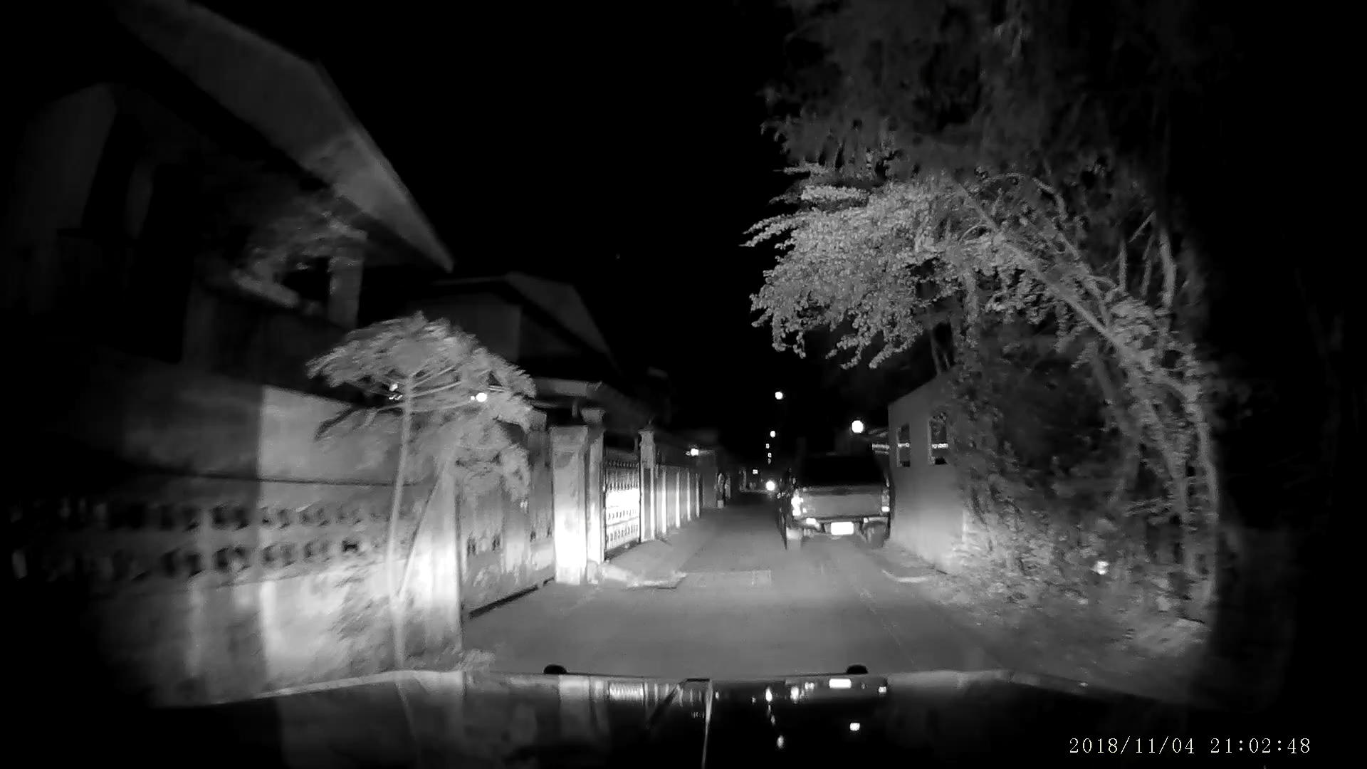 โหดมนี้จะทำงานผ่านกล้องมองกลางคืน ซึ่งเป็นกล้องinfraredนั้นเองครับกล้องตัวนี้จะทำงานเป็นกล้องมองกลางคืนแน่นอนว่าเป็นแบบขาวดำครับ จริงๆมันมีแบบสีแต่เหมือนจะผมเขียวๆเลยเอาแบบขาวดำซะดีกว่าครับมองโอเคกว่ามากเลย ส่วนในการทำงานนั้นมันจำทำงานตามสภาพแสงให้เองนะครับแน่นอนว่าไม่สามารถเปิดอะไรเองได้ครับผม กล้องโหมดกลางคืนจริงๆประโยชน์มันน่าจะช่วยดูเหตุการณ์ซะมากกว่าครับ อาจจะไม่ได้เน้นมากเพราะเหมือนช่วยเวลาที่มืดๆมากๆเราจอดรถไว้ และมีเหตุการณ์อะไรก็จะช่วยบันทึกได้ หรือ มีคนวิ่งตัดหน้าอะไรพวกนี้ในสภาพแสงน้อยมากๆโหมดนี้จะช่วยได้ ซึ่งถ้าขับรถตามถนนทั่วไปจริงๆโหมดแบบปกติน่าจะมีประโยชน์ที่สุดนั้นเองครับผม การทำงานจริงๆจากที่ลองมันทำงานยากมากๆถ้าไม่มืดจริงๆครับ ลองเทียบได้จากสภาพแสงด้านล่างได้เลย