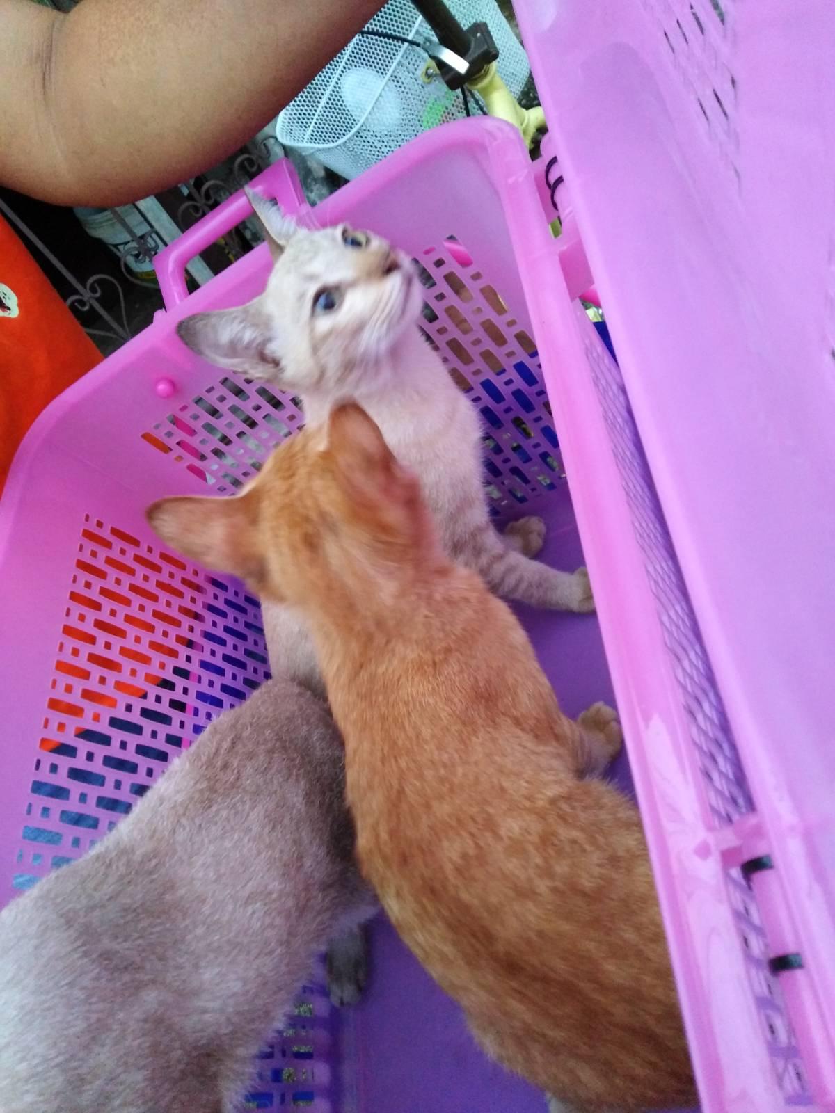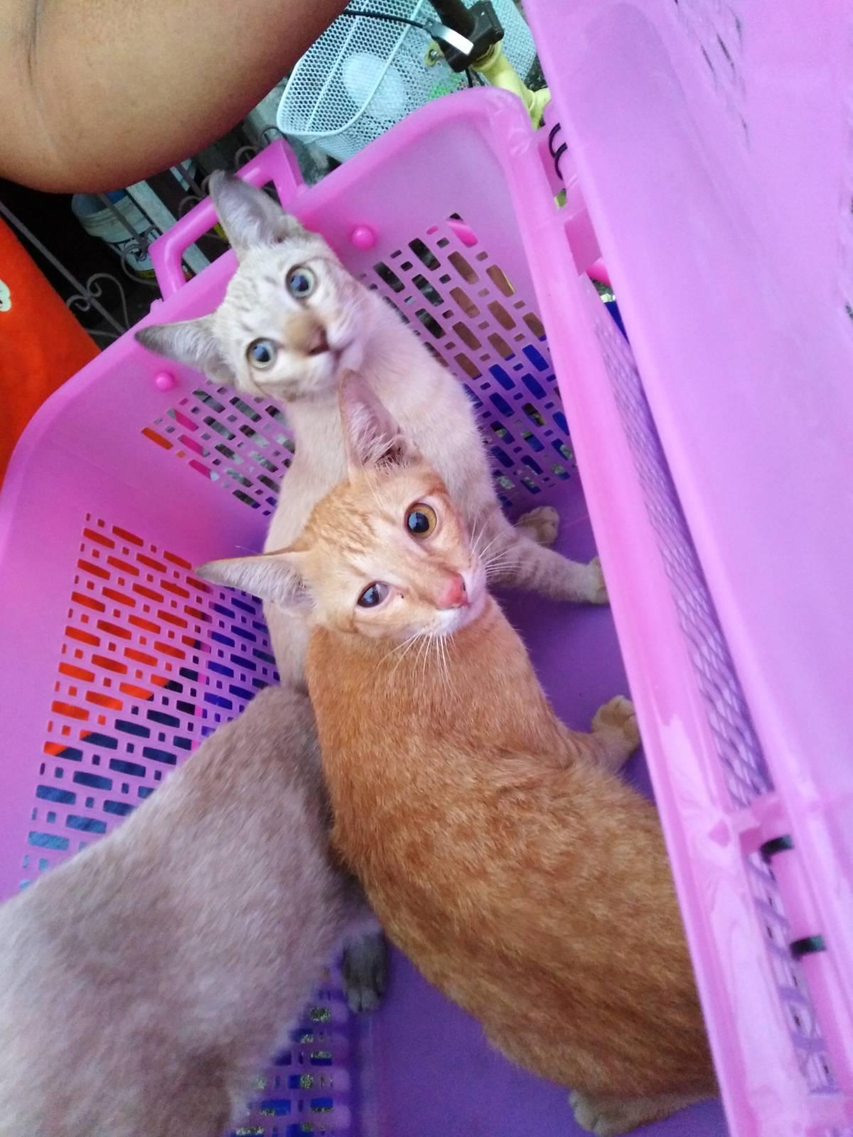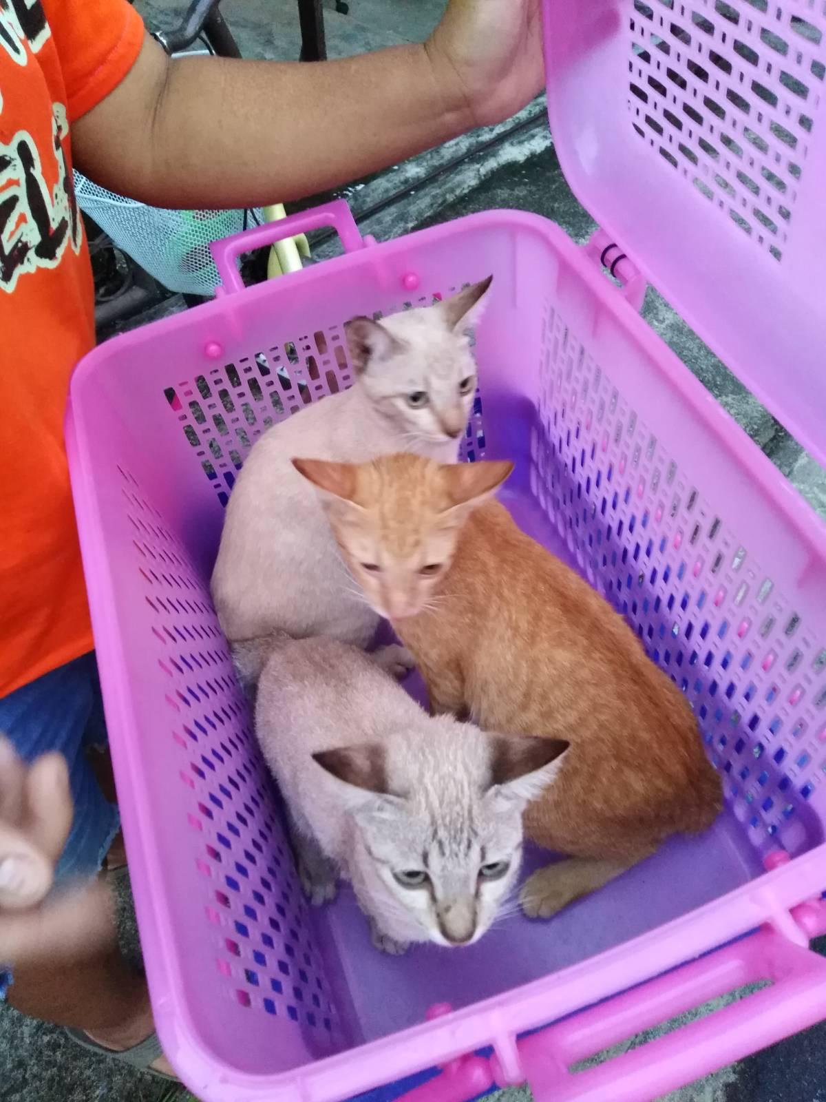 มีคนเอามาปล่อยแถวบ้านค่ะ ป้าคนนึงแกไปเก็บมาให้ช่วยหาบ้านให้เด็กๆ มี 3 ตัวนะคะ ตัวส้มผู้ ตัวขาวผู้1เมีย1 อายุประมาณ5เดือนค่ะ