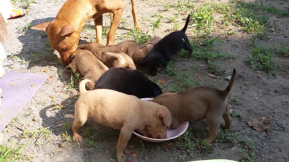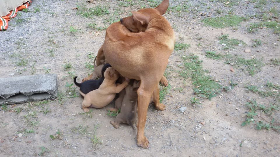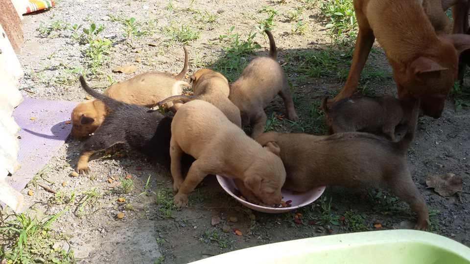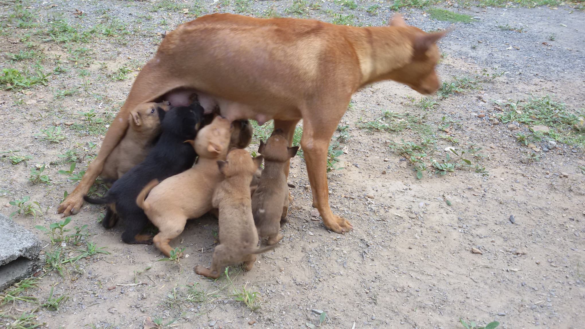 คืนวันที่ 14 ตุลาคม 2561 ฝนตกหนักมาก นอนฟังเสียงฝนเพลินหลับสบาย เช้ามาอากาศดีมาก เดินออกมาหน้าบ้าน ได้ยินเสียงลูกหมาที่ไหนร้อง พยายามฟังจับทิศทางของเสียง มาจากโรงรถข้างบ้านนี่เอง ตอนนี้ไม่ได้จอดรถแล้ว เป็นห้องเก็บของไปแล้ว เปิดประตูโรงรถ พบลูกหมาคลอดใหม่ไม่เกินอาทิตย์อยู่ปากประตู ตัวเปียกน้ำอยู่ พอมองไปข้างใน พบแม่หมาไทย นอนอยู่กับลูกอีก 3 ตัวทุกตัวเปียกน้ำหมดเลยทั้งแม่และลูก โอ้โชคดีแต่เช้าได้ลาภสัตว์ 4 เท้า น่าสงสารแม่หมามากเมื่อคืนฝนตกใหญ่คงย้ายลูกหนีน้ำข้างหลังบ้านเป็นไร่อ้อย ทั้งคืน กว่าจะย้ายมาหมด แต่เดี๋ยวก่อนเดินลึกเข้าไปในโรงรถ มีลูกหมานอนอยู่ด้านในอีก 4 ตัว รวมทั้งหมด 8 ตัว ตัวผู้ 6 เมีย 2 คุณพระ ภรรยารีบหาข้าวให้แม่หมากิน 1 ชามหมดภายในพริบตาเลยเพิ่มให้อีก 1 ชามหมดเหมือนเดิม ความวุ่นวายเริ่มตามมาเดิมมีหมาอยู่แล้ว 2 ตัว ลาบอดอร์ อายุ 8 ปี 1 ตัว กับสุนัขจรจัดเมื่อตอนปีใหม่วิ่งมาใต้ท้องรถอีกตัว แต่ก็ไม่มีใครรังแกกัน ตอนนี้ลูกเริ่มโตแล้วครับ ทั้งข้าว ทั้งนมสด เพราะแม่มีน้ำนมไม่พอ กำลังน่ารัก ครับ ต้องการมากที่สุดตอนกรงหมาครับ ท่านใดมีไม่ใช้แล้วอยากได้ครับ เพื่อใส่น้องตอนกลางวัน ส่วนกลางคืนปล่อยหมดครับ กลางวันรถเยอะ กลัวจะทับน้องๆ ครับ ผมอยู่สุพรรณบุรีครับ