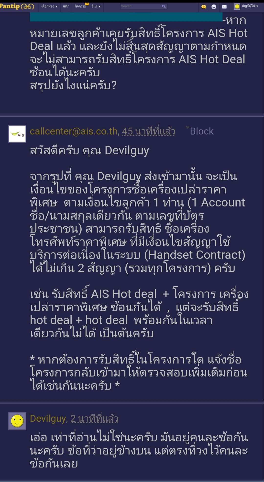 คือตอนแรกที่เห็นเงื่อนไขแบบนี้ ผมแอบดีใจนะ ว่าเออ ในที่สุดก็มี Operator ที่ให้ลูกค้าเก่าได้สิทธิ์ ไม่ใช่เอะอะๆ ก็จะให้เปิดเบอร์ใหม่ การให้ extend สัญญาผมมองว่า อย่างน้อยลูกค้าก็ผูกมัดกับคุณนานขึ้นอีกเป็นปี