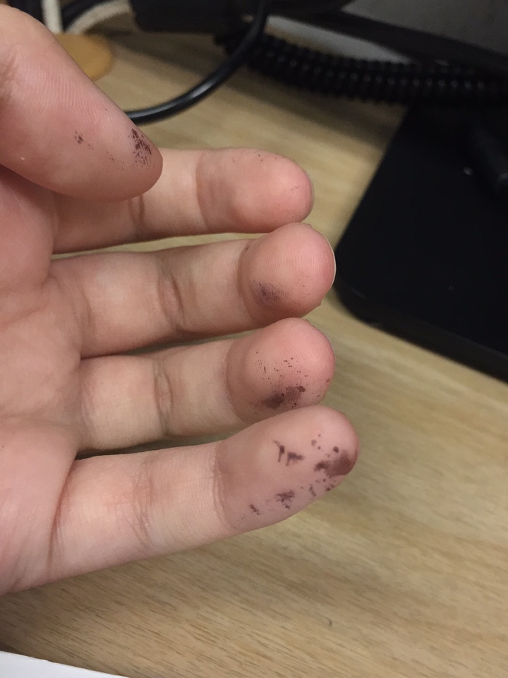 คือเราเป็นอะไรก็ไม่รู้ค่ะ น่าจะไปโดนอะไรมา แต่เอาทั้งสบู่ น้ำยาล้างจาน เปลือกมะนาว ก็ขีดไม่ออกค่ะ ละก็ไม่จางเลย ทีแรกสงสัยว่าเป็นจากข้างในรึป่าว แต่พอลองเอาเข็มลองดึงๆหนัง พบแค่ว่าติดกับหนังอ่ะ แต่ทำไมล้างไม่ออก เราต้องมช้อะไรล้างอ่ะคะ ใครเคยเป็นบ้างช่วยบอกที