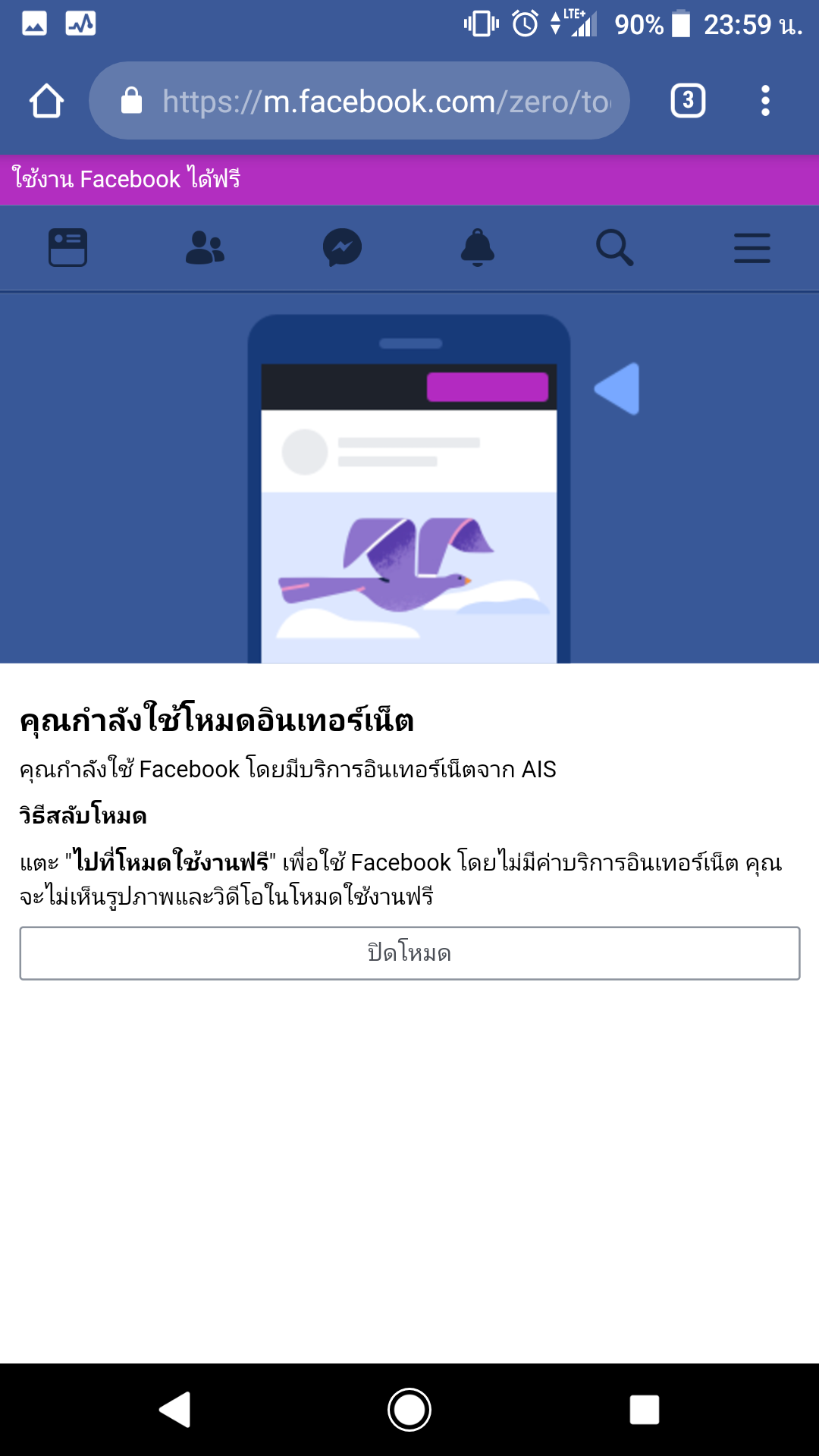 พอก็ก็จะมี แถบม่วงๆที่เขียน " ใช้งาน Facebook ฟรี " ผมใช้ sim AIS แต่ทำไมผมไม่สามารถปิดมันได้เพราะอะไร ?