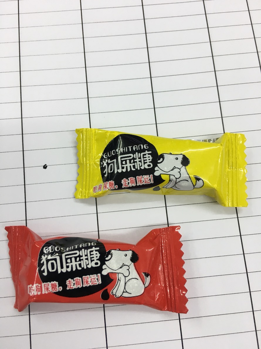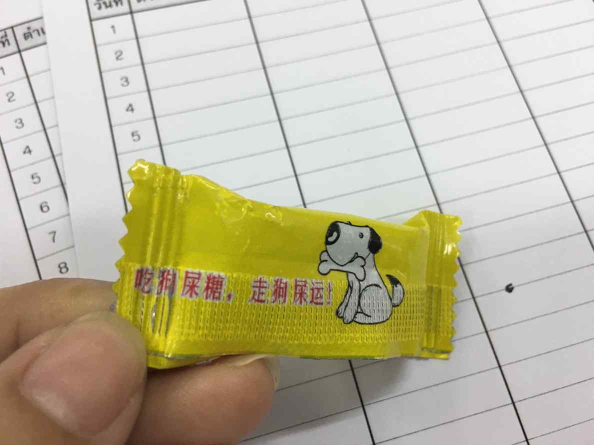 พอดีลูกได้ขนมมาจากที่โรงเรียนค่ะ กินไปหลายอันแล้ว กว่าแม่จะมาเห็น มันเป็นรูปหมาคาบกระดูก มีแต่ภาษาจีน ไม่รู้แปลว่าอะไร