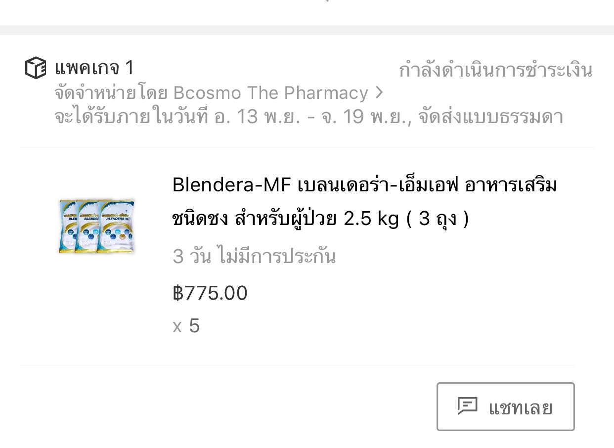จึงได้สั่ง Blendera-MF 2.5 kg 3 ถุง ลด 75% เป็นราคา 775 บาท x 5 ดังรูป