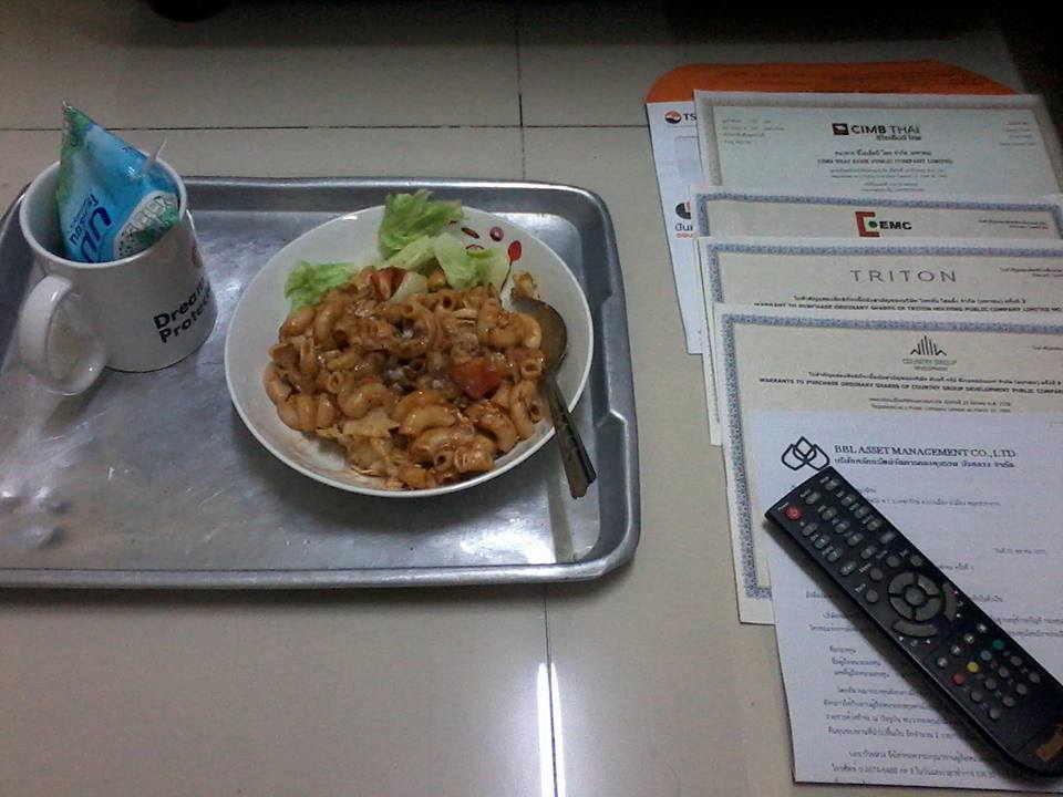 อาหารมื้อค่ำนี้ฟรี ครับ. รอดไปอีกวันนะมนุษย์เงินเดือน. แล้วมีใบหุ้น และ w" ส่งมาเพิ่ม. กับจดหมายติดตามมาที่บ้าน