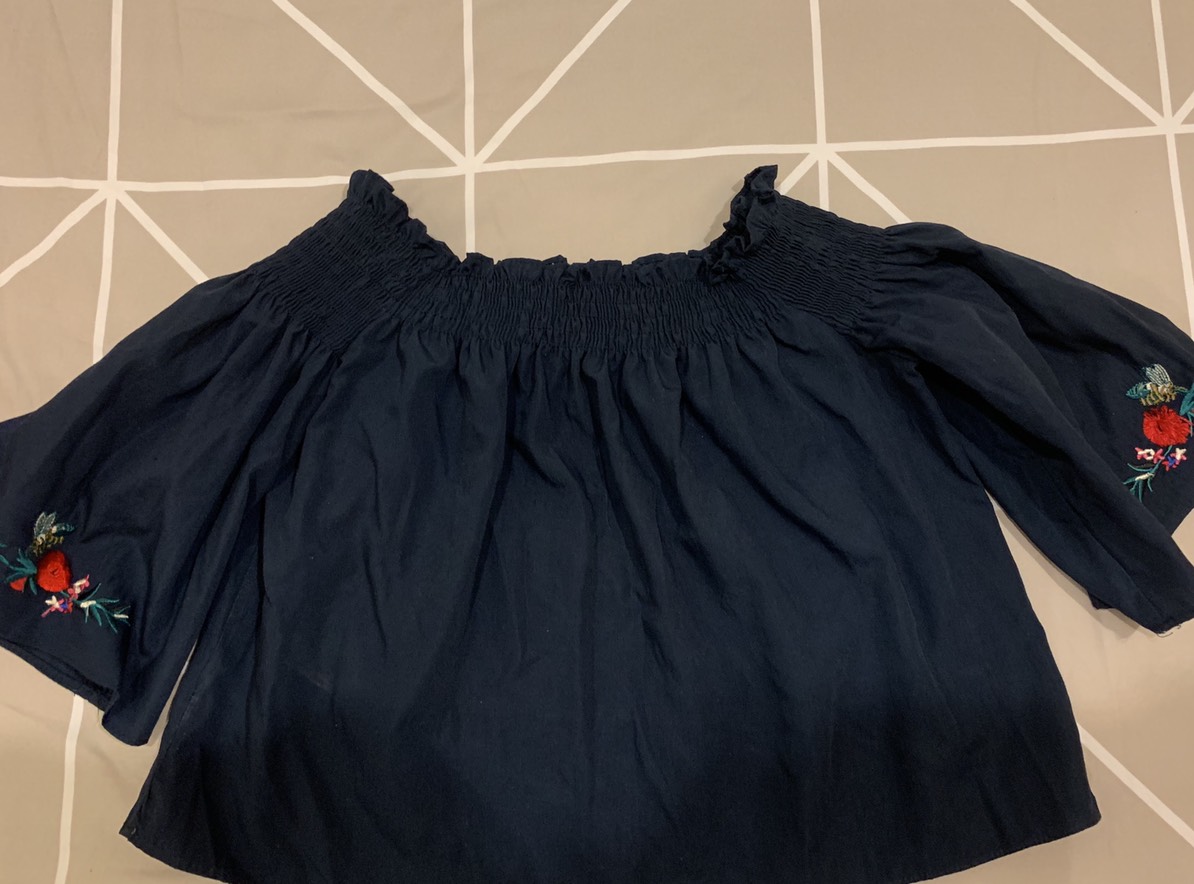 4.เสื้อปาดไหล่ งานปัก น่ารัก ๆ ค่ะใส่กับกางเกงยีนส์ขาสั้นเอวสูง ขาย 80