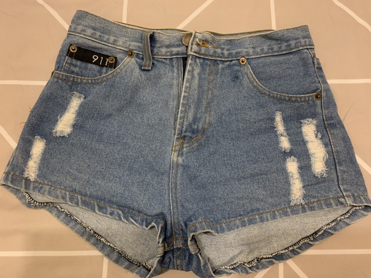 7.กางเกงยีนส์ขาสั้นสีซีด น่ารัก ป้าย 911 สภาพดีไม่มีตำหนิ ขาย 60
