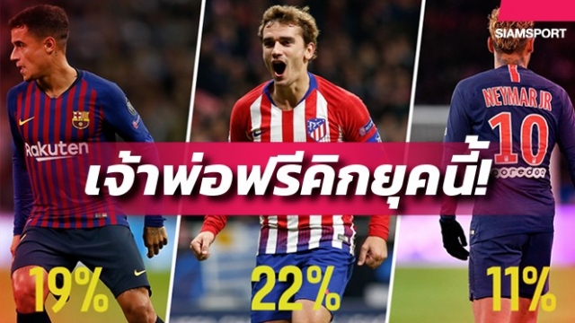 เมสซี่หลุด! 5 จอมแม่นฟรีคิก 5 ลีกใหญ่ยุโรป