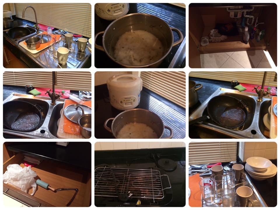 เราและแฟนไปถึงบ้าน 17:00 น. แม่บ้านก็ยังไม่มา ตามแล้วตามอีก ใจก็อยากล้างจานเอง แต่น้ำยาล้างจานไม่มี