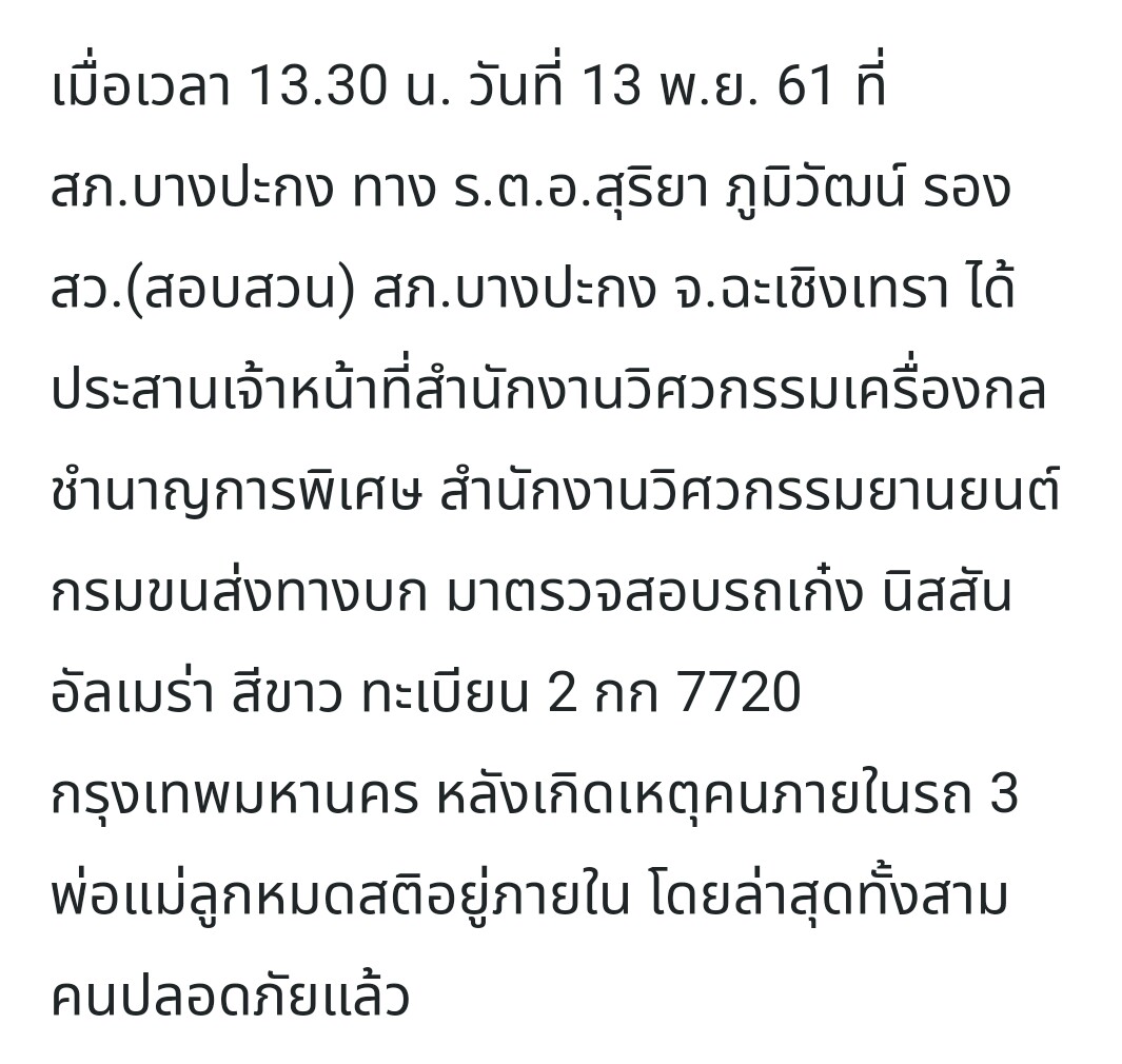 สรุป 3 พ่อแม่ลูกสลบคาเก๋ง จากสเกิร์ตชุดแต่งมรณะ ทำไอเสียย้อนเข้าตัวรถ