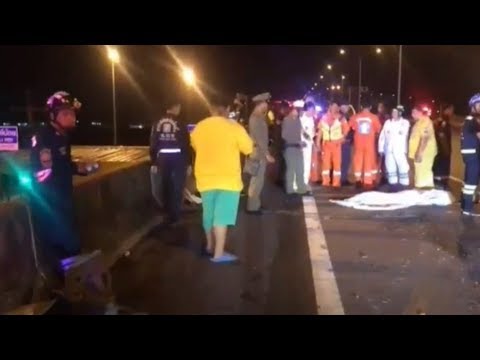 อีกศพแล้ว! หนุ่มจอดดูรถเสียบนทางด่วนบูรพาวิถี สิบล้อเสยดับสยอง