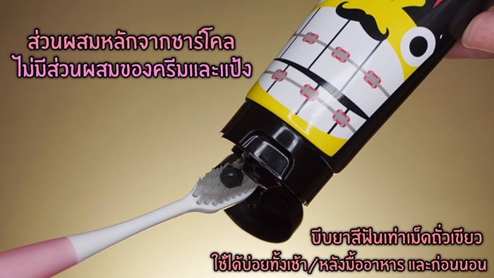 เวลาใช้บีบยาสีฟันในปริมาณเท่าเม็ดถั่วเขียวก็เพียงพอแล้ว ประหยัดไปอีก ยาสีฟันนี้สามารถใช้ได้บ่อยทั้งเช้า หลังมื้ออาหาร และก่อนนอนเลย เนื้อยาสีฟันเค้าเป็นสีดำเพราะส่วนผสมเค้าเป็นชาร์โคลเน้นๆยังไงล่ะ กลิ่นหอมเหมือนสมุนไพร ไม่ฉุน