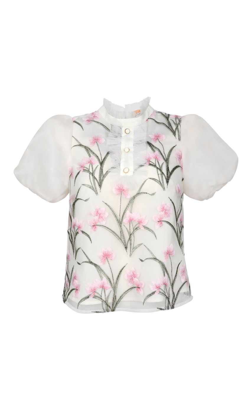 1) Embroidered High-Neck Blouse