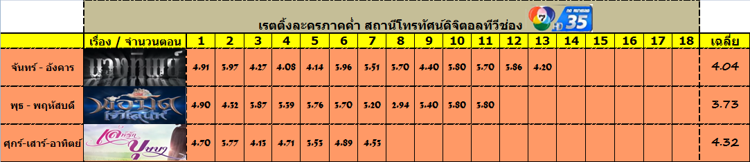 ** หมายเหตุ ** พื้นหลังสีแดง = เรตติ้งที่ต่ำสุดของเรื่อง /// พื้นหลังสีเขียว = เรตติ้งที่สูงสุดของเรื่อง ขอบคุณ ข้อมูลเรตติ้งโดย ==> Twitter : หนูมายา หนูลั้