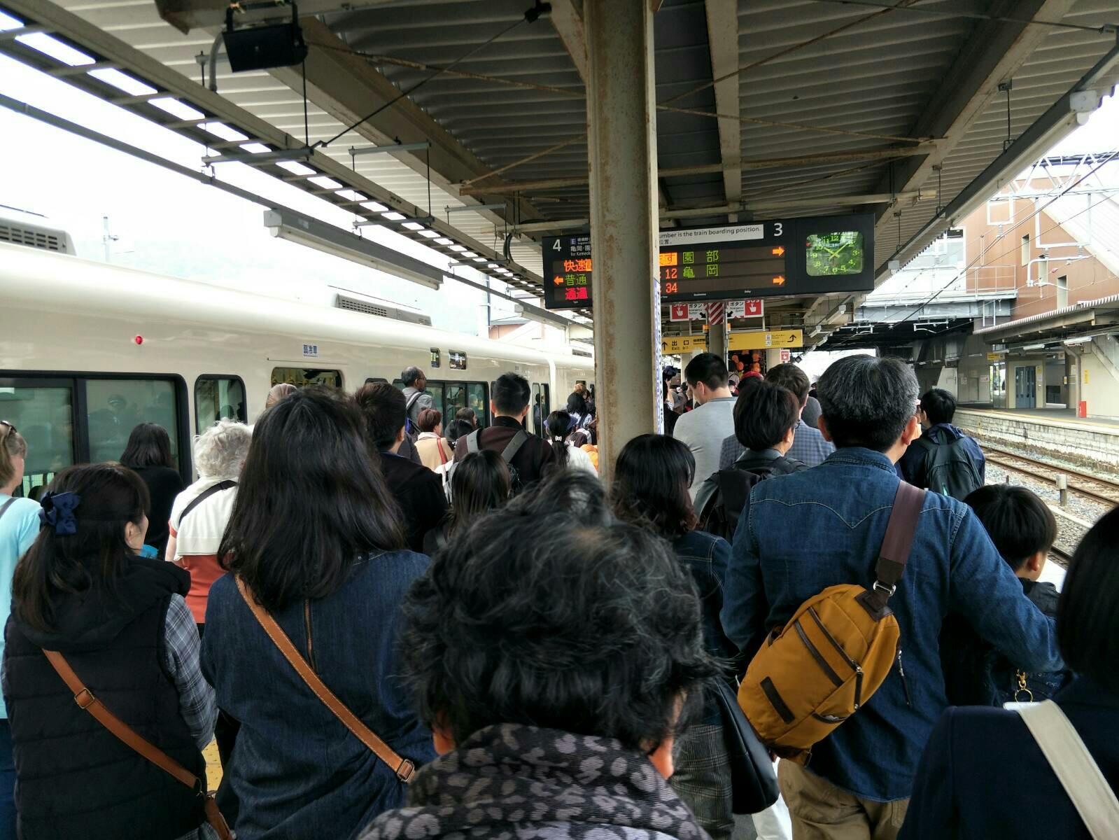 พอเรามาถึงสถานี Kyoto แล้ว เราก็ต่อรถไฟไปยังเมือง Arashiyama ลงที่สถานี Aaga-Arashiyama ครับ