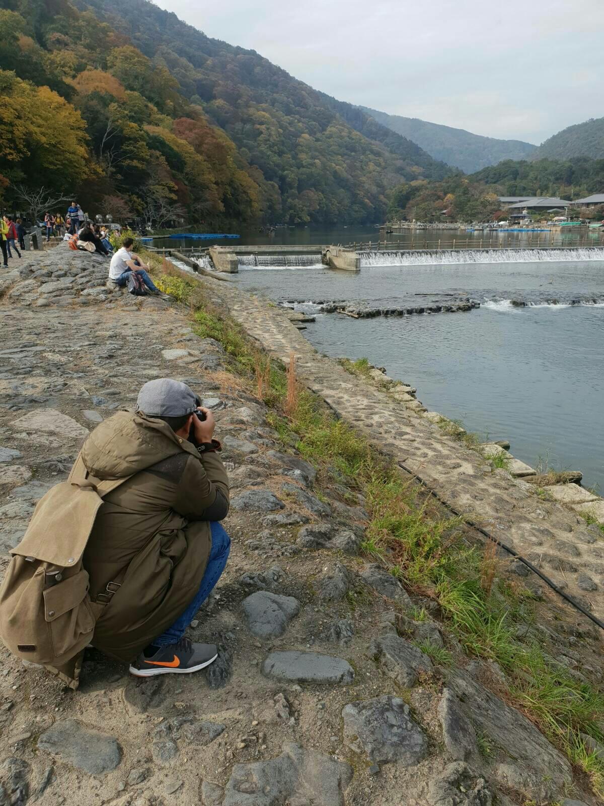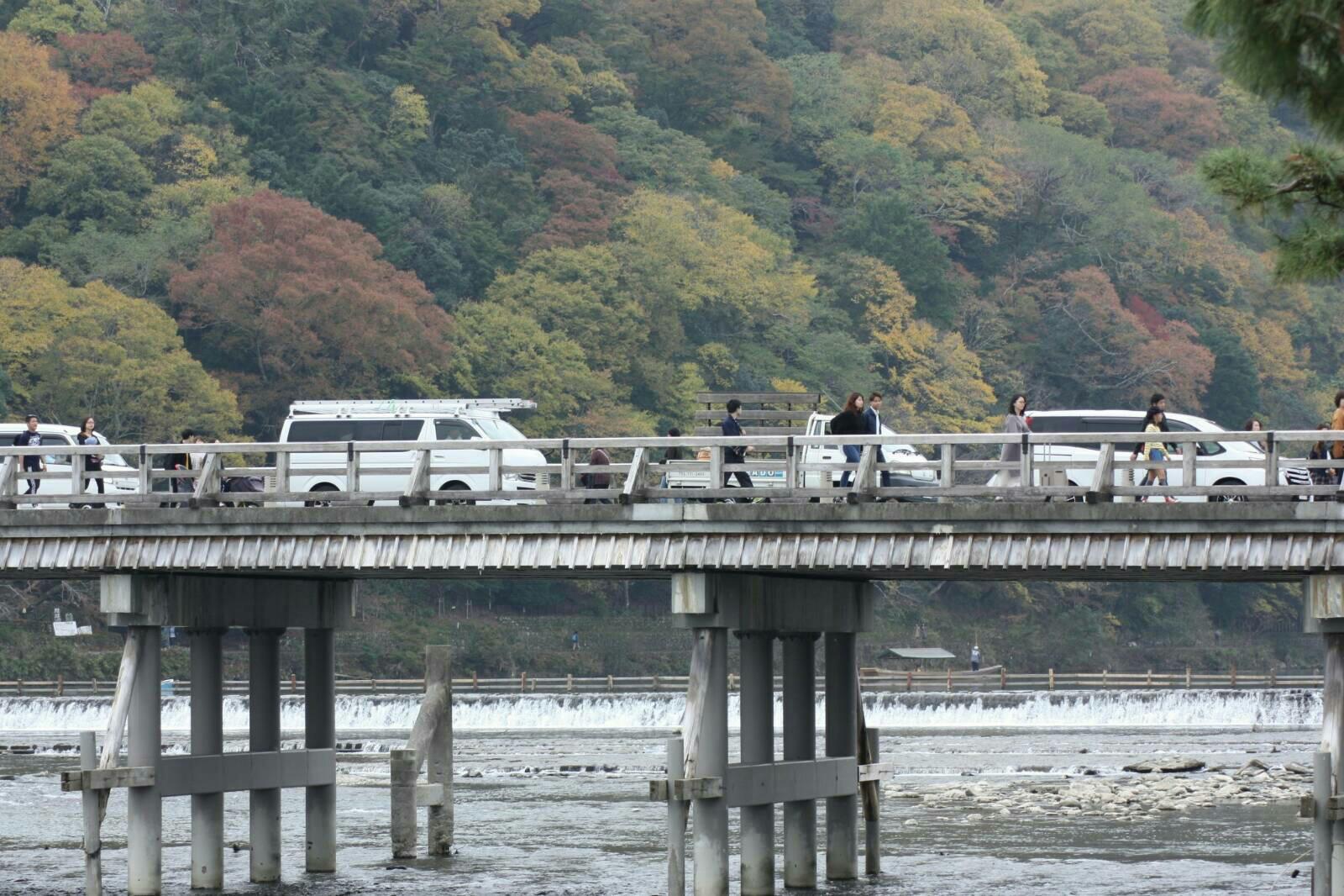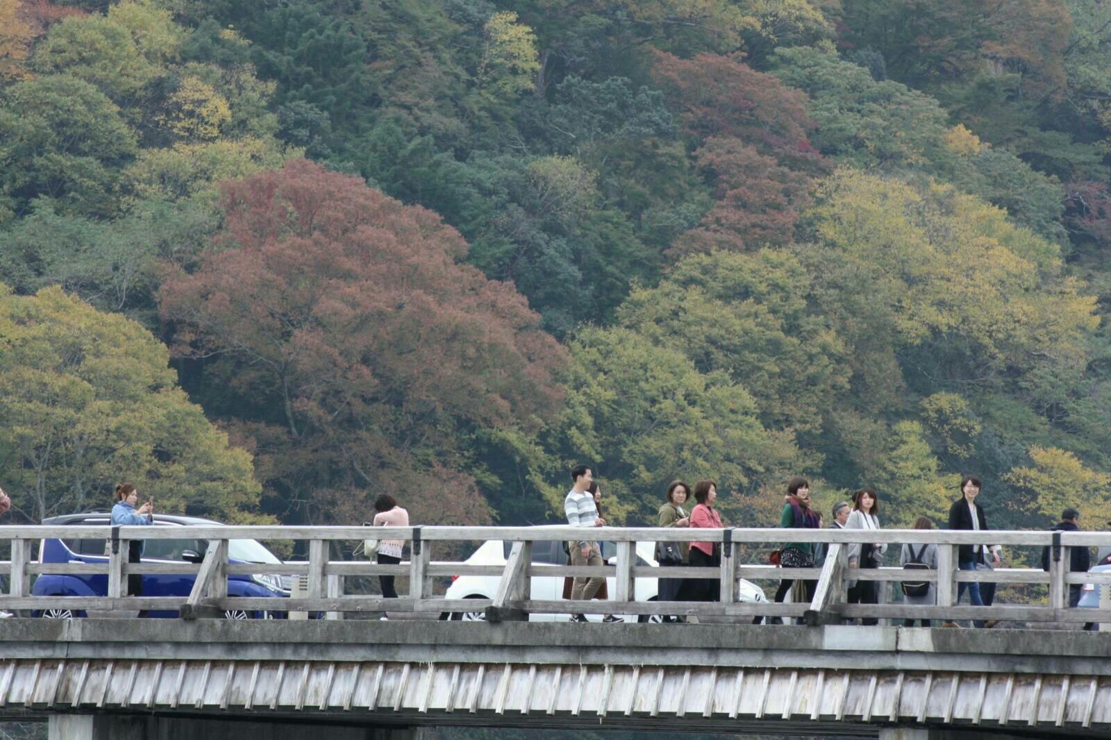 ผมก็เดินไปชมสะพาน Togetsu-kyo ครับ บรรยากาศดีเลย เริ่มเห็นใบไม้สีแดงๆล่ะครับ