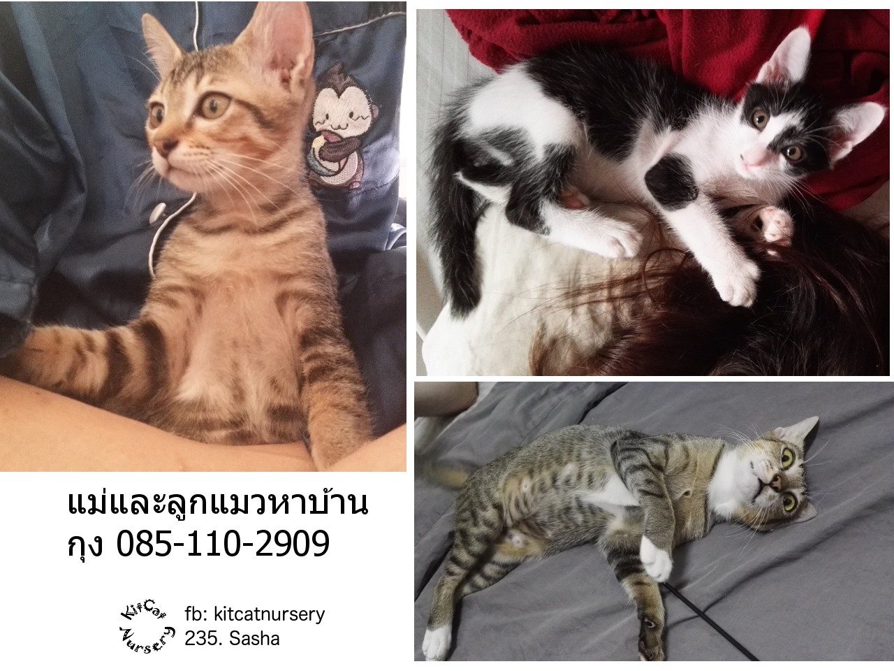 แม่ของน้องๆโดนรถชนตายตั้งแต่ยังเล็ก ตอนนี้กินอาหารเม็ดได้ใช้กะบะทรายเป็น ร่าเริงสดใส ขอโอกาสให้น้องๆได้มีบ้านถาวรที่อบอุ่นมีคนดูแลด้วยนะคะ พร้อมต้อนรับสมาชิกใหม่ ติดต่อทางโทรศัพท์ กุง 085-110-2909 น้