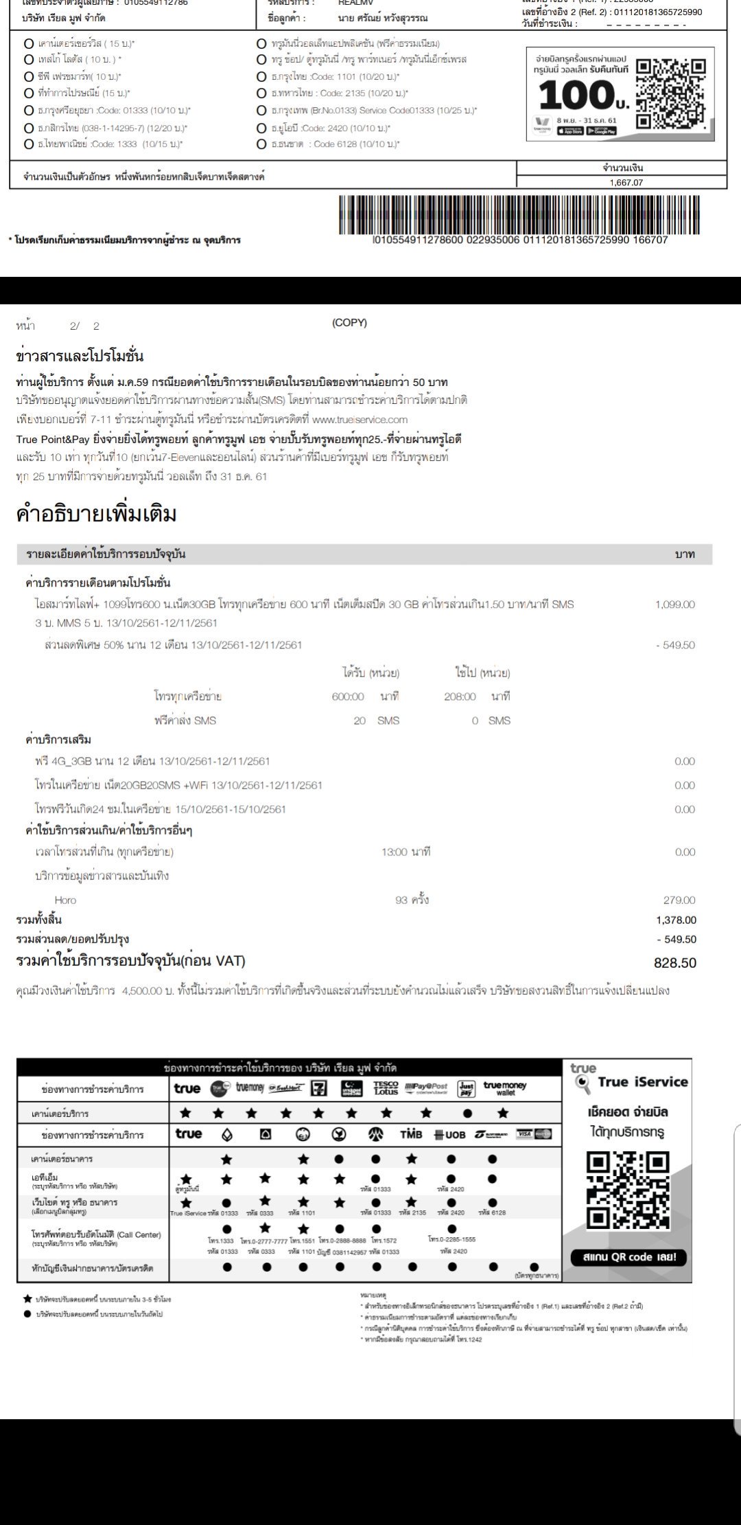 ติดเน็ตบ้านทรูแพ็จ 599 บาท บิลเดือนแรกออกมา 726 บาท เพราะอะไร ใครรู้บอกที