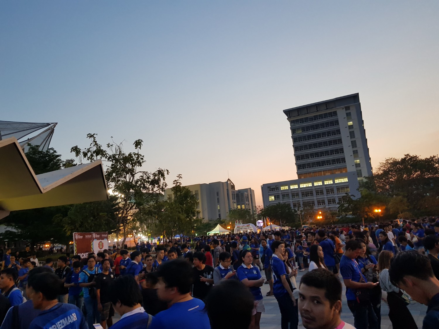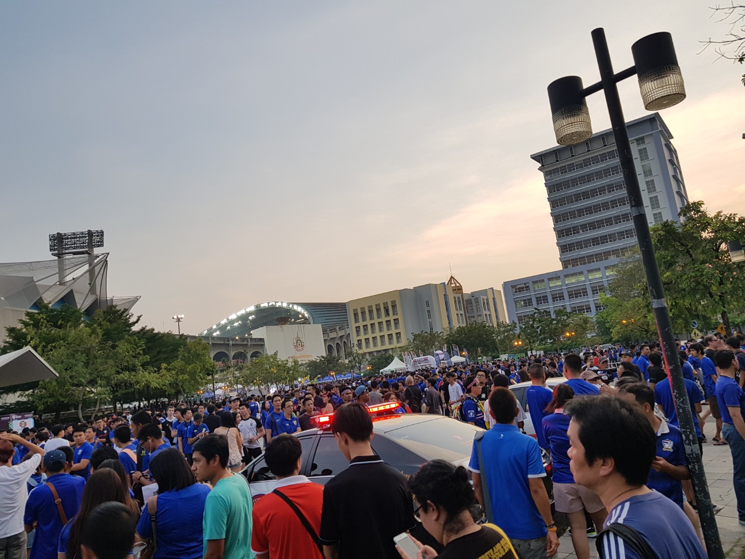 ผมต้องใช้เวลารอถึง 1 ชั่วโมงนิดๆกว่าจะได้บัตร เข้าคิวตอน 17.10 น. ได้ตั๋วตอน 18.20 น. บอลเริ่มเตะ 18.30 น.