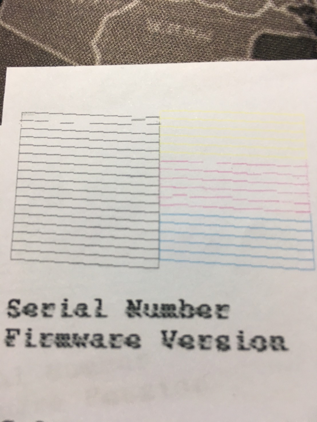 ผมลองล้างหัวพิมด้วยน้ำต้ม แล้วก็ไม่หาย ลองใช้ สลิง ต่อกับหัวพิมที่มันแหลมๆ แล้วใช้หลอดเข็มฉีดยา ปีบน้ำต้มร้อนเขาไป ปรากฏว่ามันก็ออกที่หัวพิม ครบทุกรู ไม่มีรูไหนตัน จากนั้นก็ใส่กลับเข้าไปในเครื่องเหมือนเดิมแล้ว ปริ้นดู มันก็ดีขึ้นแต่ สีแดงก็ยังมีแถบสีเหลืองปนมาเหมือนเดิม