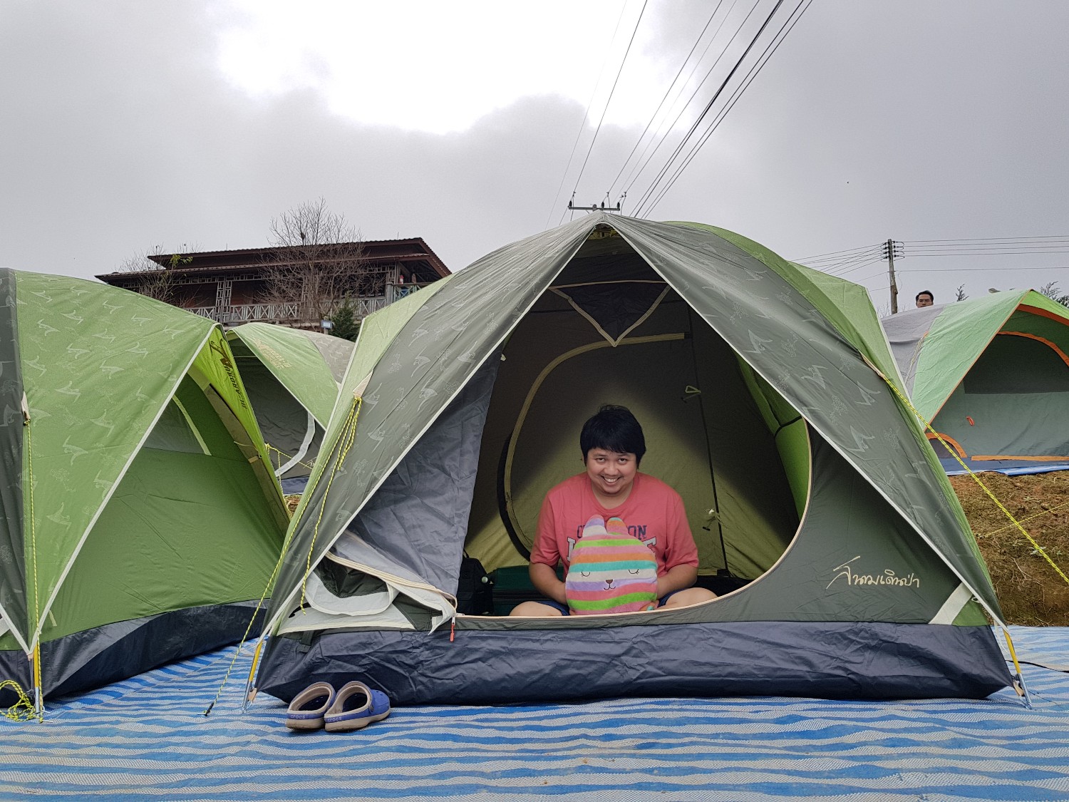(ในเต้นท์มีหมอน มีผ้าห่ม มีที่นอนให้คะ)