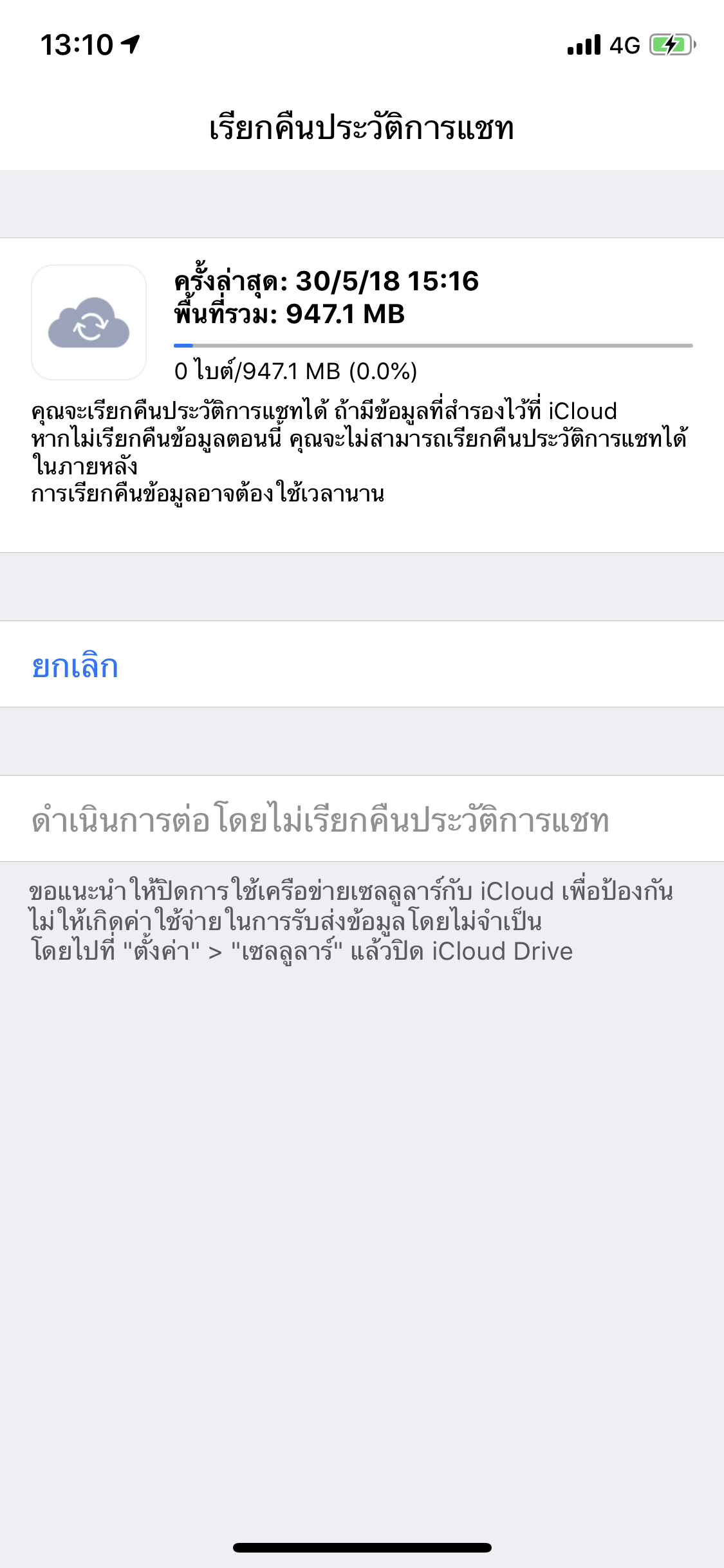 เผลอไปเคลียประวัติไลน์ แต่จำได้เคย backup ไว้ ลอง Restore ดู ค้างหน้าเดิมนานมาก และ อยู่ 0% ไม่คืบหน้าอะไรทิ้งมา 1 ชั่วโมงแล้ว